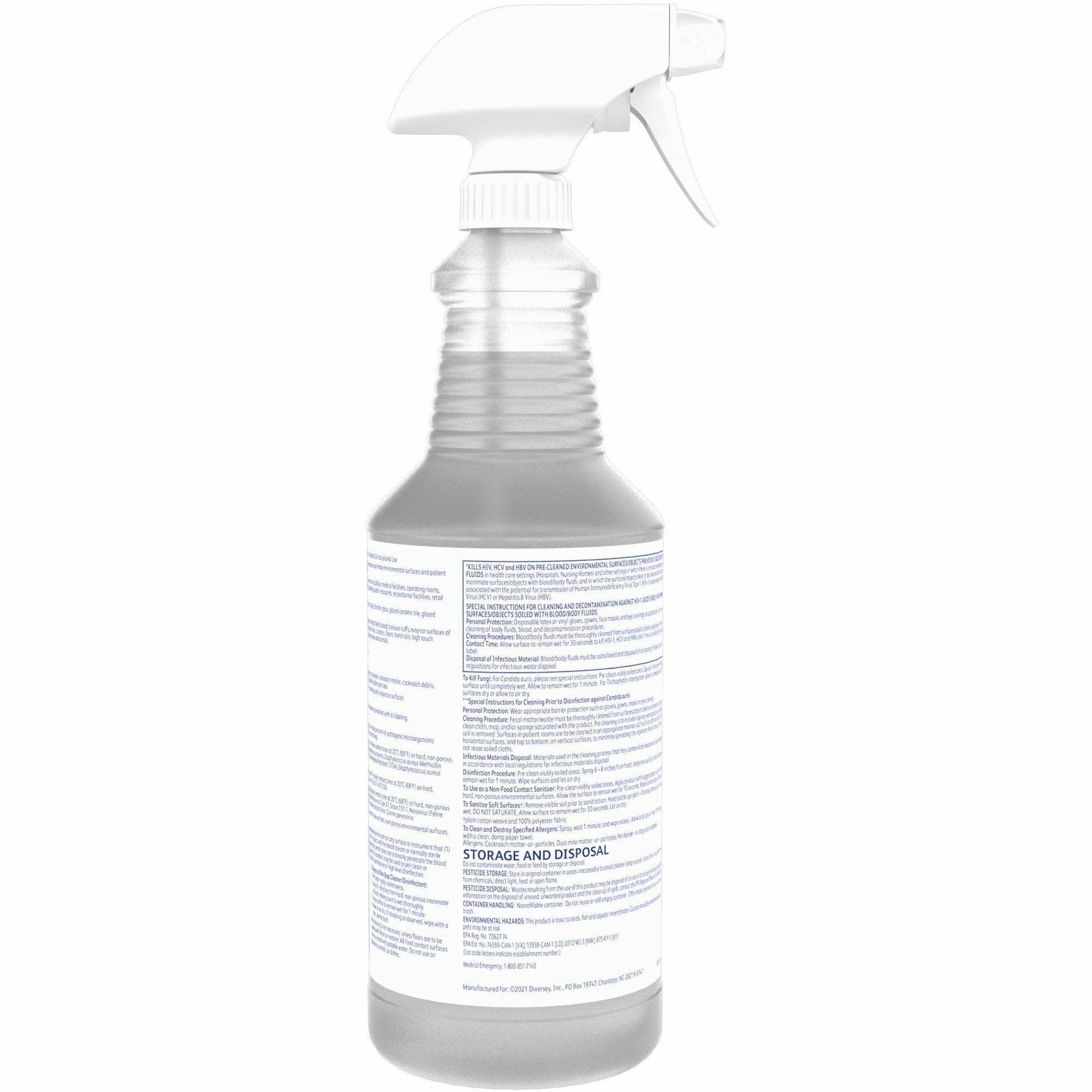 Diversey Oxivir 1 RTU Disinfectant Cleaner – Ready-To-Use Spray – 32 fl oz (1 quart) – Characteristic Scent – 12 / Carton – Colorless