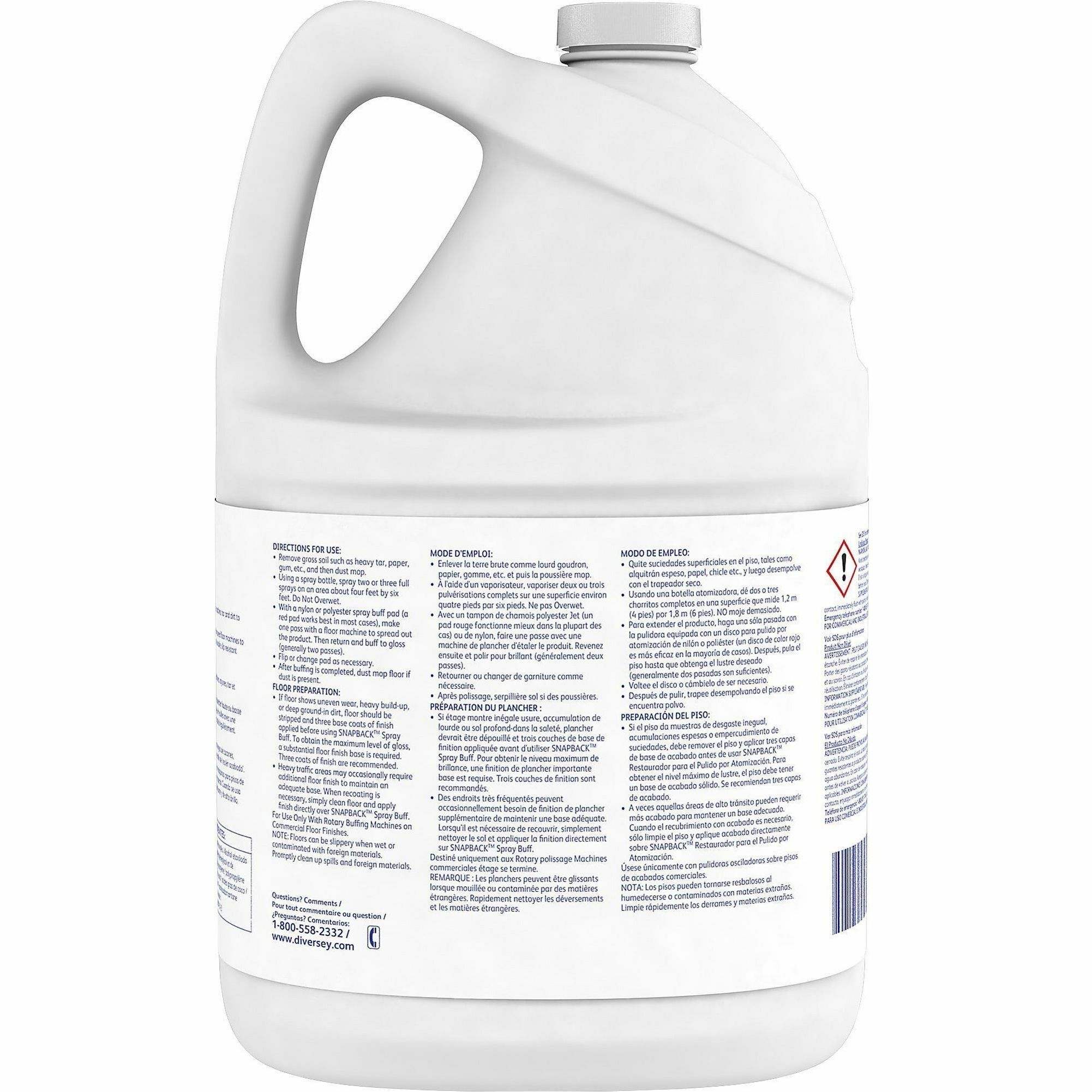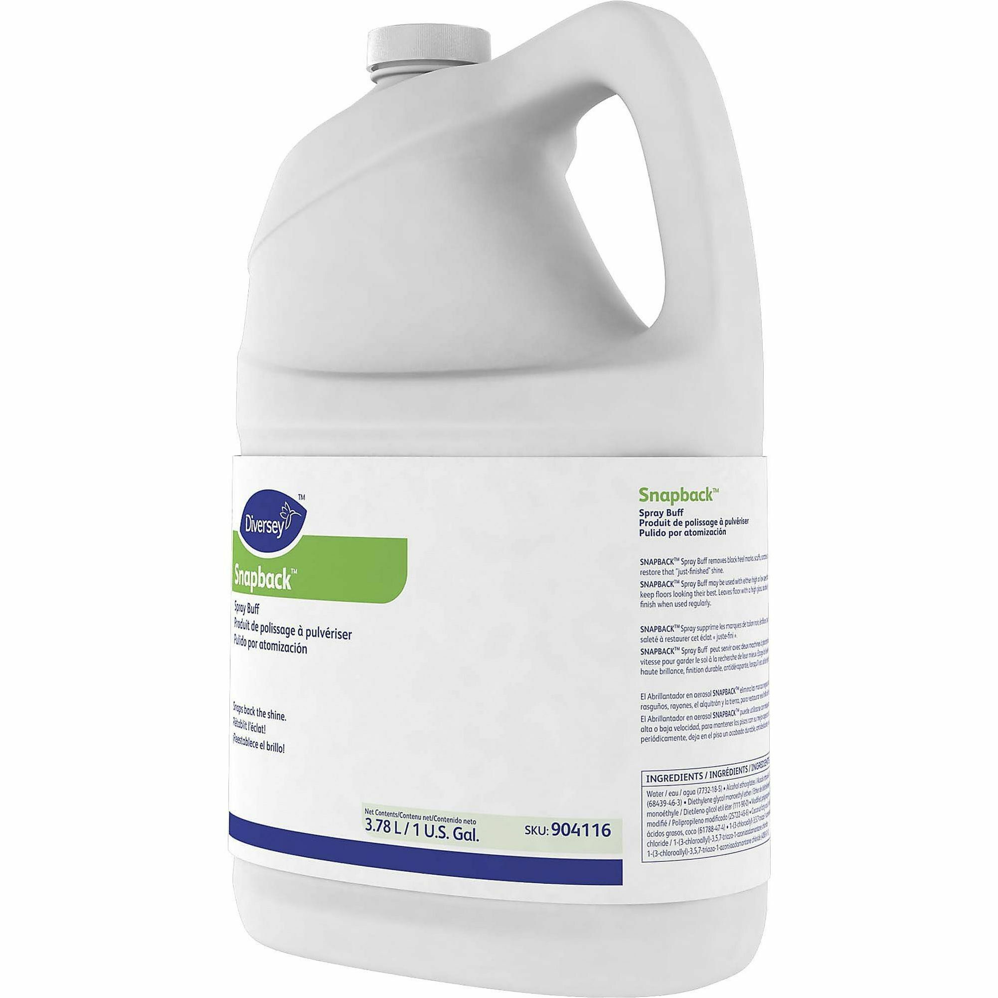 | Marketing Information | Snapback Spray Buff keeps your floors looking their best at all times, giving you that "just-finished" shine. It delivers state-of-the-art performance and cost-efficiency in conventional maintenance systems. Remove black heel marks and scuffs on all floor finishes. Spray Buff also repairs scratches. One gallon covers 25, 000 to 30, 000 square feet. Formula is opaque white in color and has a mild scent. |