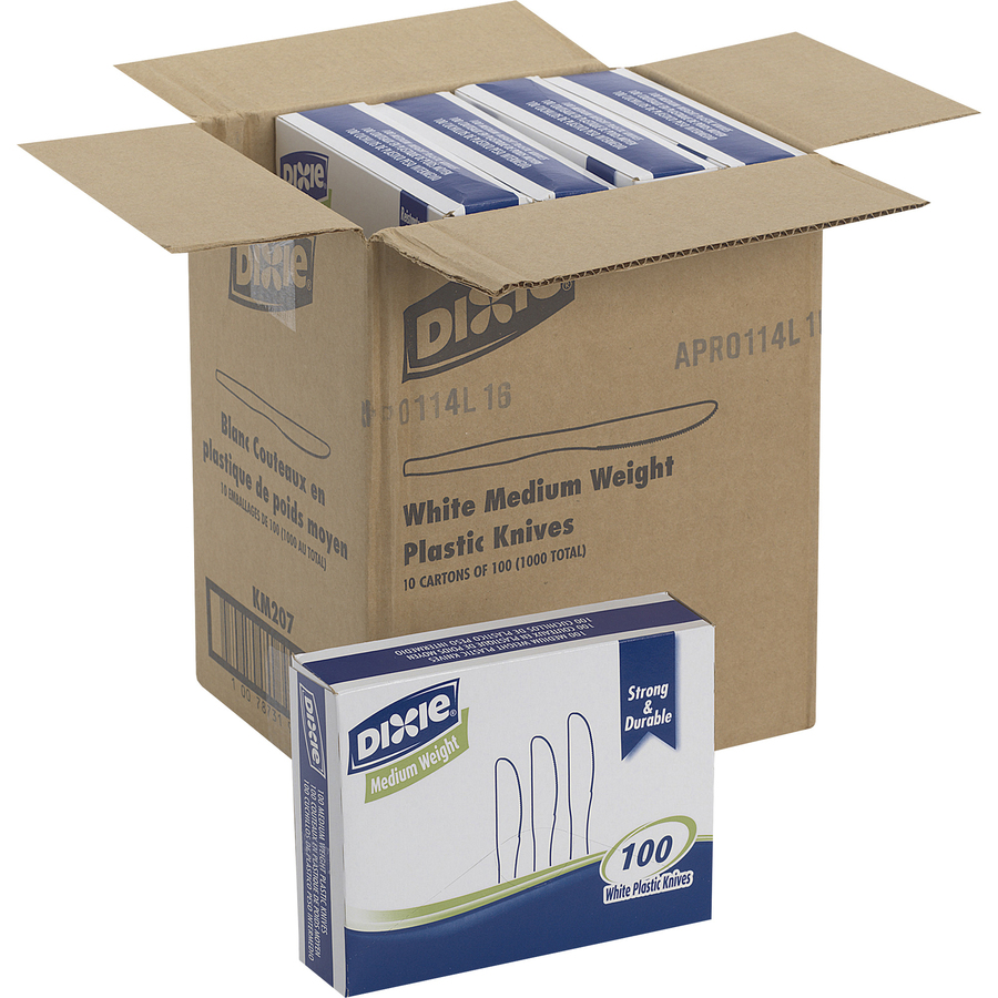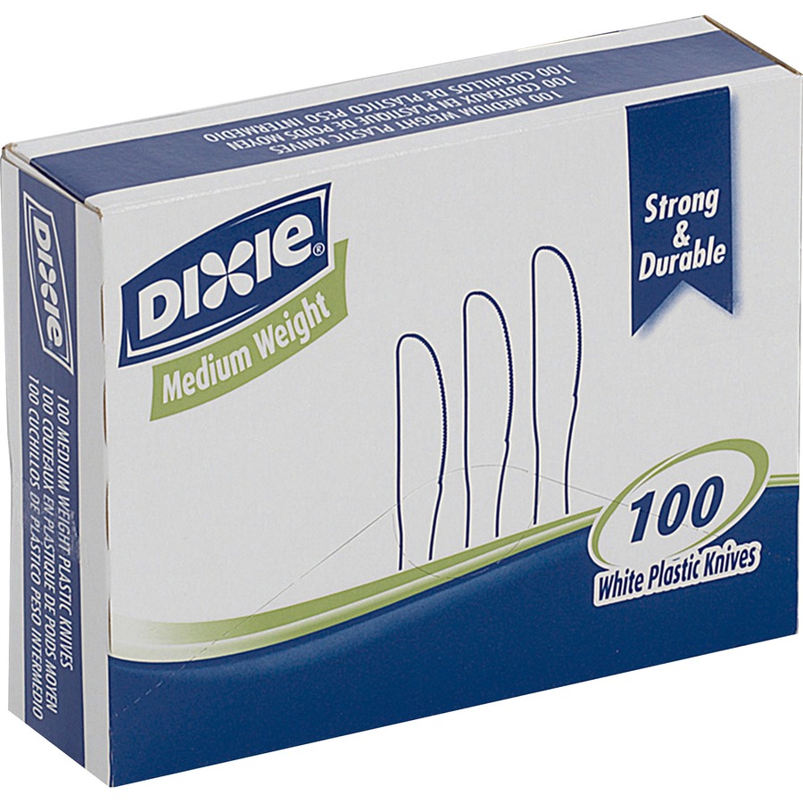 Dixie Medium-weight Disposable Knives Grab-N-Go by GP Pro – 100 / Box – 10/Carton – Knife – 1000 x Knife – Polystyrene – White