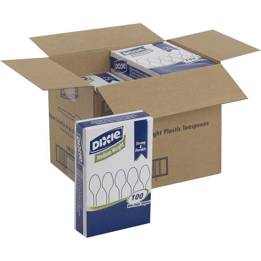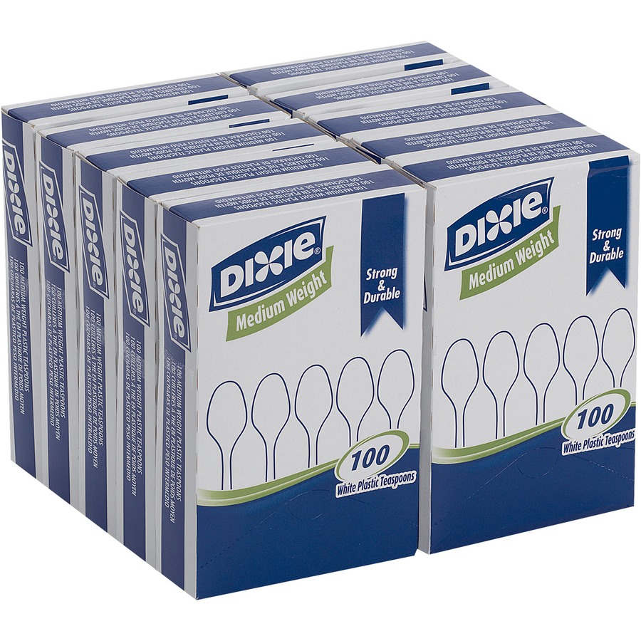 Dixie Medium-weight Disposable Teaspoon Grab-N-Go by GP Pro – 100 / Box – 10/Carton – Teaspoon – 1000 x Teaspoon – Plastic – White