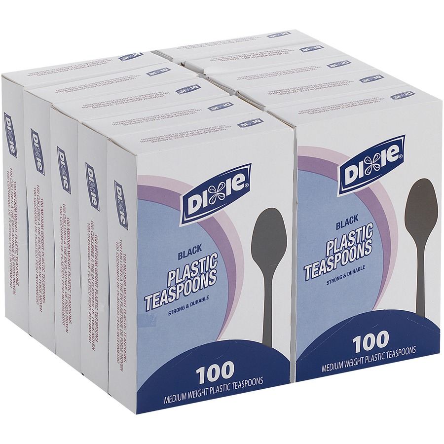 Dixie Medium-weight Disposable Teaspoon Grab-N-Go by GP Pro – 100 / Box – 10/Carton – Teaspoon – 1000 x Teaspoon – Plastic, Polystyrene – Black