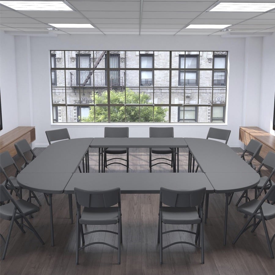 Dorel Zown Classic 24″ Corner Blow Mold Fold Table – For – Table TopHalf Moon Top – 3 Legs x 29.50″ Table Top Width x 29.20″ Table Top Depth – 29.50″ Height – Gray – High-density Polyethylene (HDPE), Resin – 2 / Carton