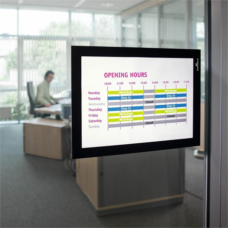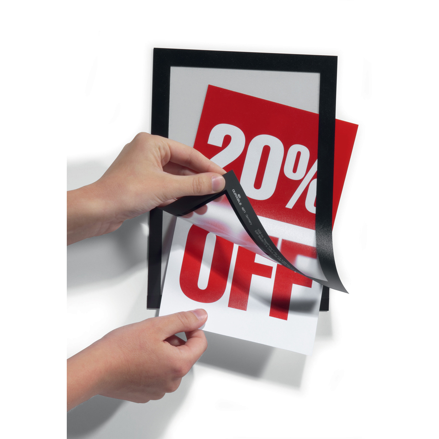 DURABLE® DURAFRAME® Self-Adhesive Magnetic Half-Letter Sign Holder – 6.5″ x 9.5″ Frame Size – Rectangle – Horizontal or Vertical – Self-adhesive, Magnetic – 2 / Pack – Black