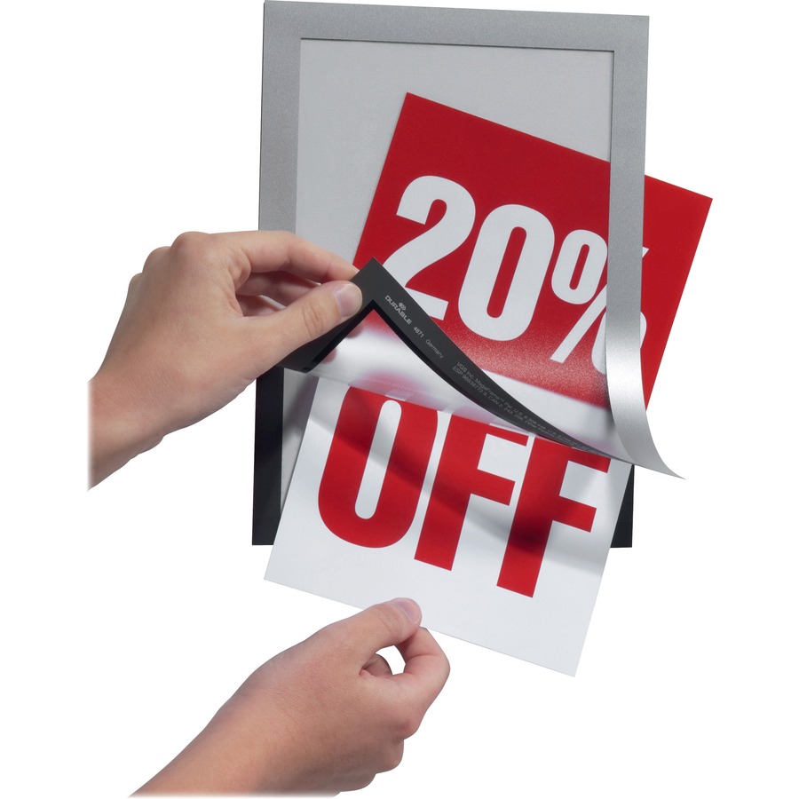 DURABLE® DURAFRAME® Self-Adhesive Magnetic Half-Letter Sign Holder – 6.5″ x 9.5″ Frame Size – Rectangle – Horizontal or Vertical – Self-adhesive, Magnetic – 2 / Pack – Silver