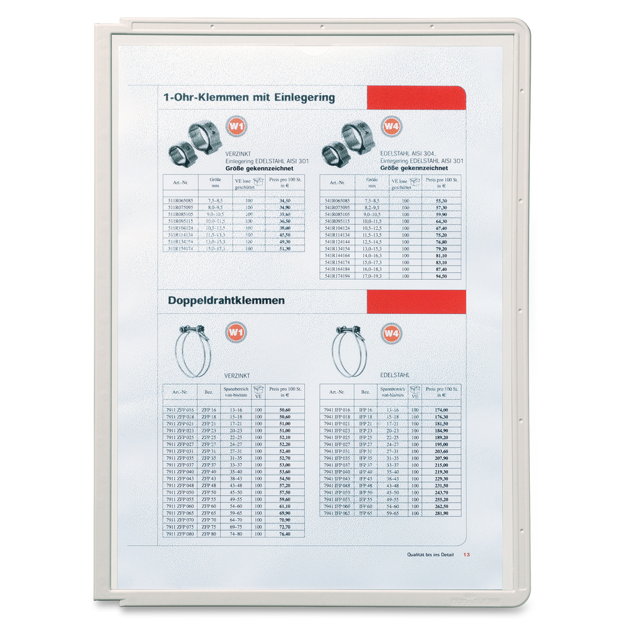 <p>Letter-size display panels are compatible with all Durable Sherpa and Standard display reference systems. Easy-to-load panels are open at the top and inside edge for fast sheet insertion. Unique "paper secure" corner clips hold pages safely in place. Heavy-gauge, nonglare polypropylene has rugged outer frames that withstand wear and tear.</p>