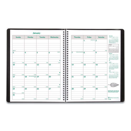 EcoLogix Recycled Monthly Planner, EcoLogix Artwork, 11 x 8.5, Black Cover, 14-Month: Dec 2024 to Jan 2026