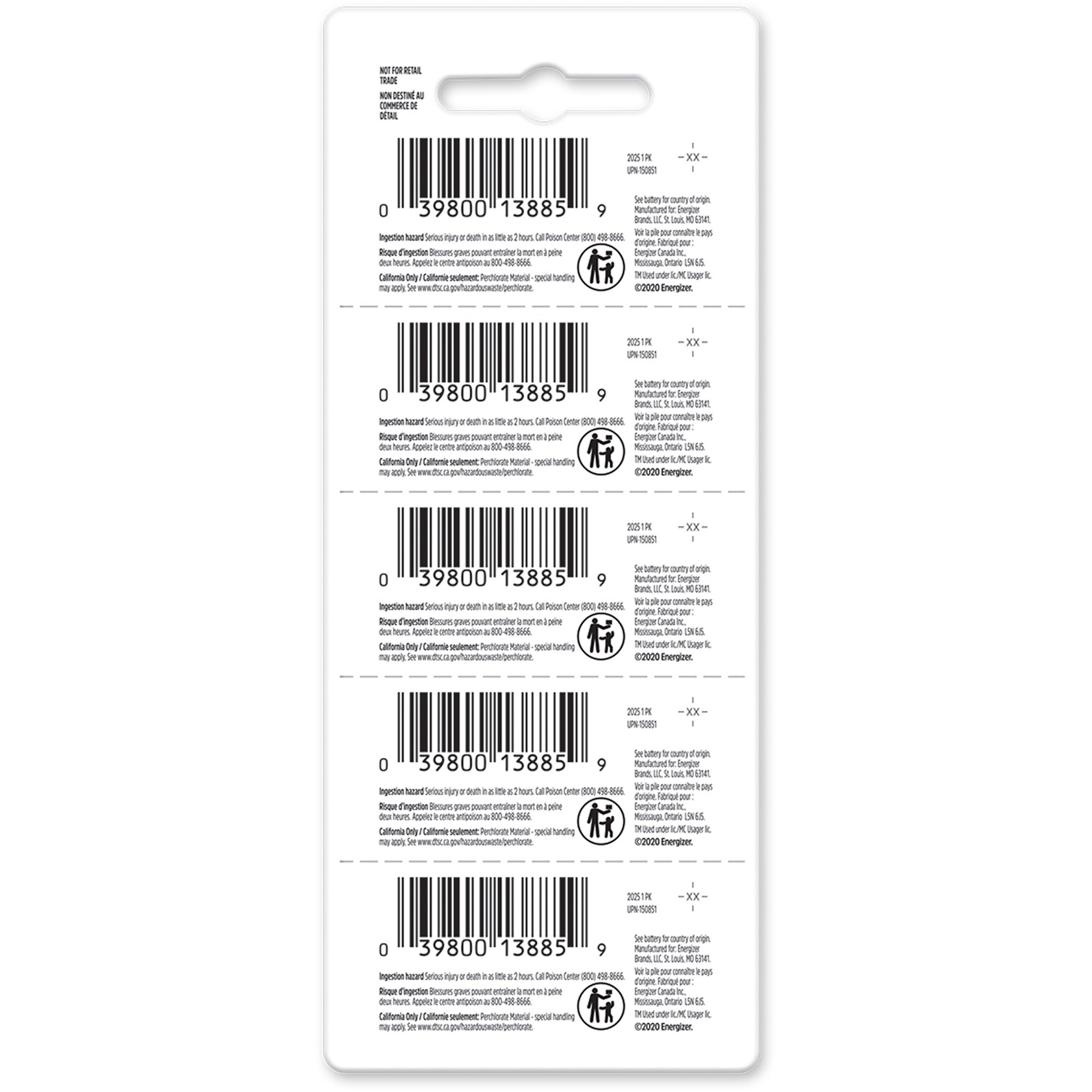 Energizer Industrial 2025 Lithium Batteries – For Digital Thermometer, Glucose Monitor, Laser Pointer – CR2025 – 170 mAh – 3 V – 5 / Pack