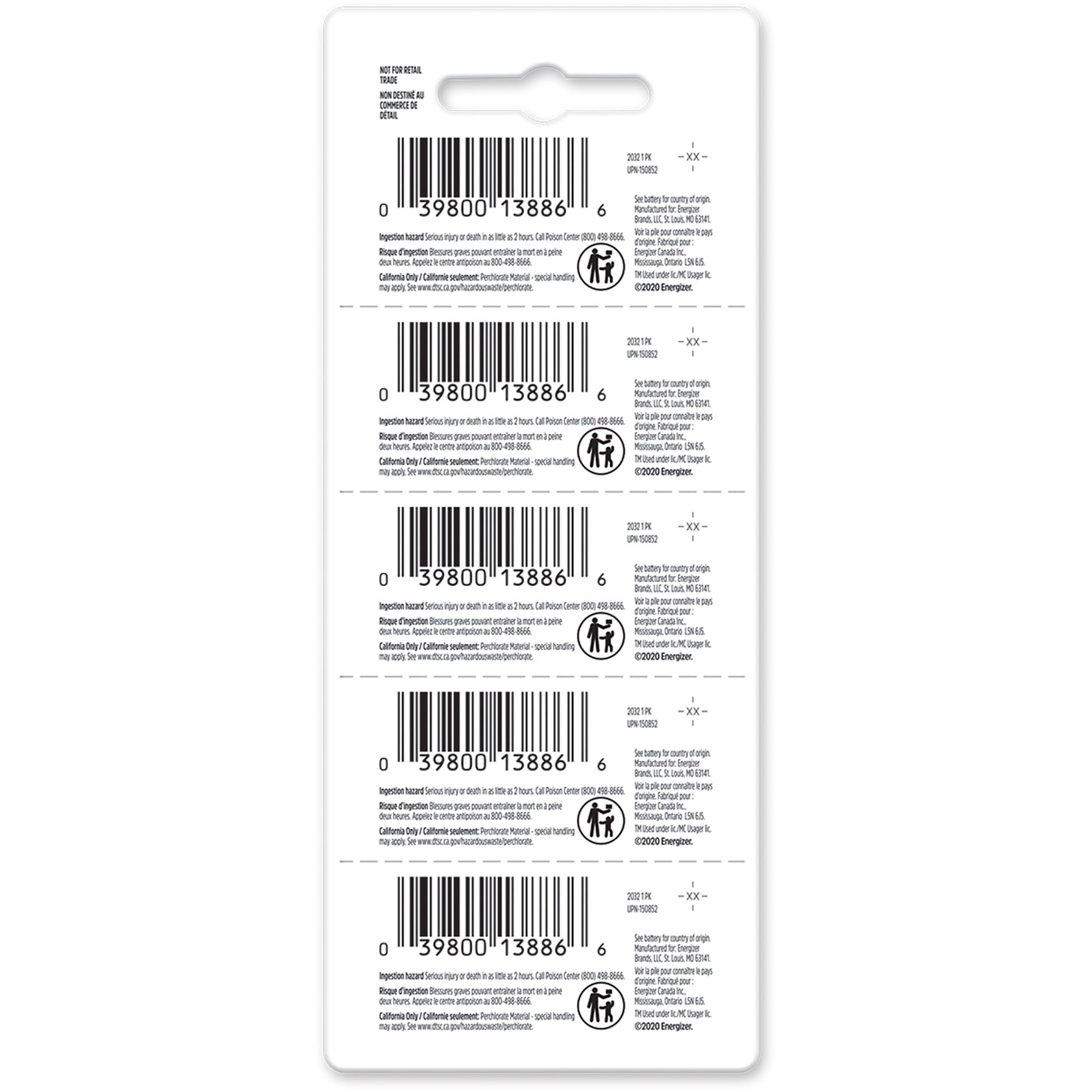 Energizer Industrial 2032 Lithium Battery 5-Packs – For Glucose Monitor, Laser Pointer, Digital Thermometer – CR2032 – 254 mAh – 20 / Box