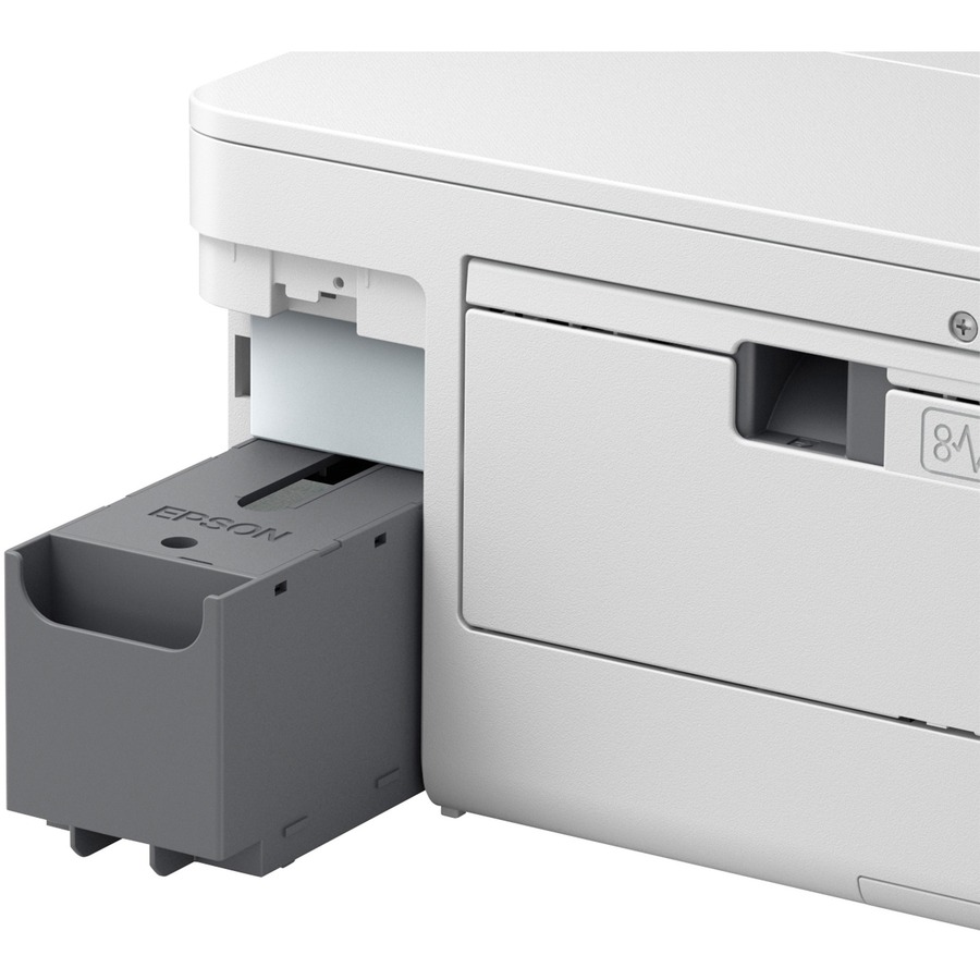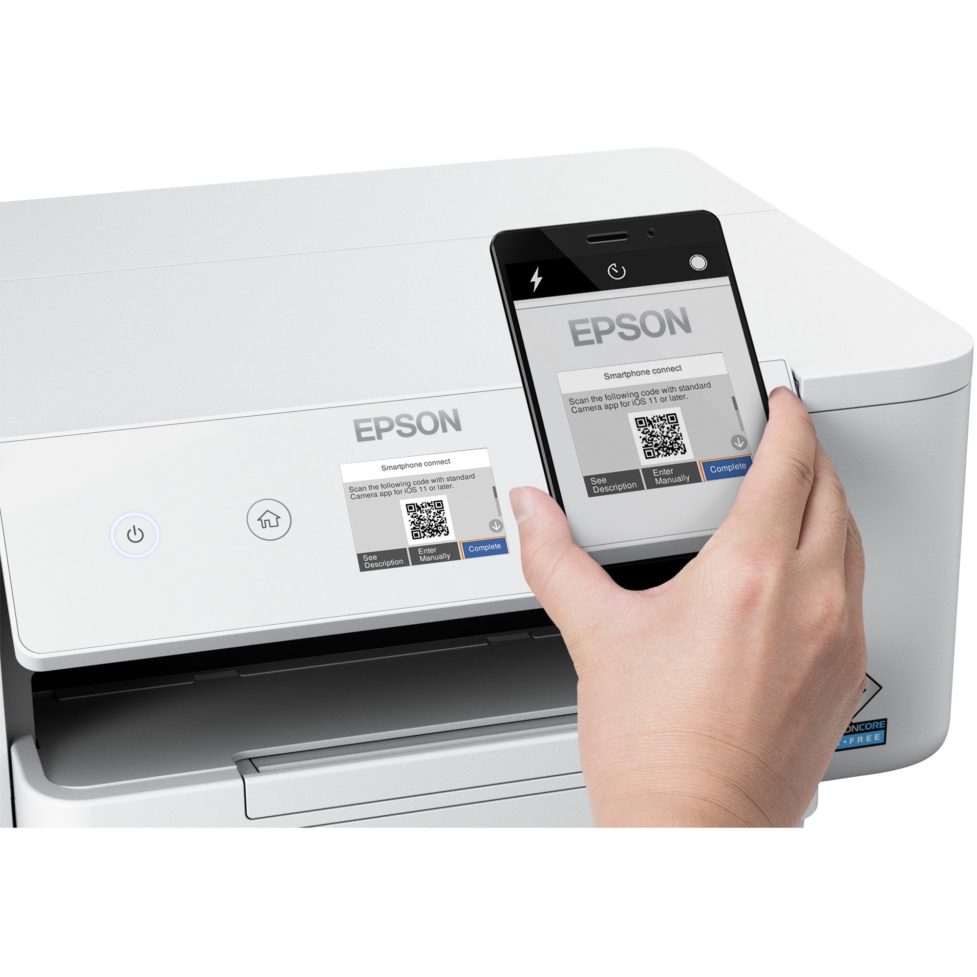 | Marketing Information | Streamline your businesses workflow and increase efficiency with this WorkForce Pro WF-C4310 Color Printer. Reliable design provides exceptional productivity with an impressive, monthly page volume up to 1, 600 pages and print speeds up to 21 ppm (black) and 11 ppm (color). Print legal-size documents and borderless, letter-size photos in resolutions up to 4800 x 2400 dpi. Input tray holds up to 250 sheets for optimal use. PrecisionCore Heat-Free Technology uses lower power consumption. Compact construction is ideal for any setting. Vivid, DURABrite Ultra Inks deliver professional-quality prints. Connect using built-in wireless, Wi-Fi Direct, Ethernet or Bluetooth to print from your mobile device. Wireless connectivity supports innovative, WPA3 wireless security. 2.4" color LCD easily navigates and controls options. |