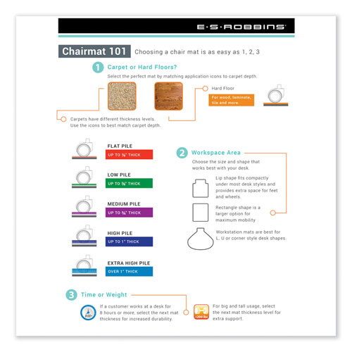 Engineered for high performance and a smooth effortless roll. Clear mat designed to preserve and protect the beauty of laminate, wood, tile and other hard flooring. Protects against wear and tear from chair casters. Straight edge.Note: This is a non-returnable item.
