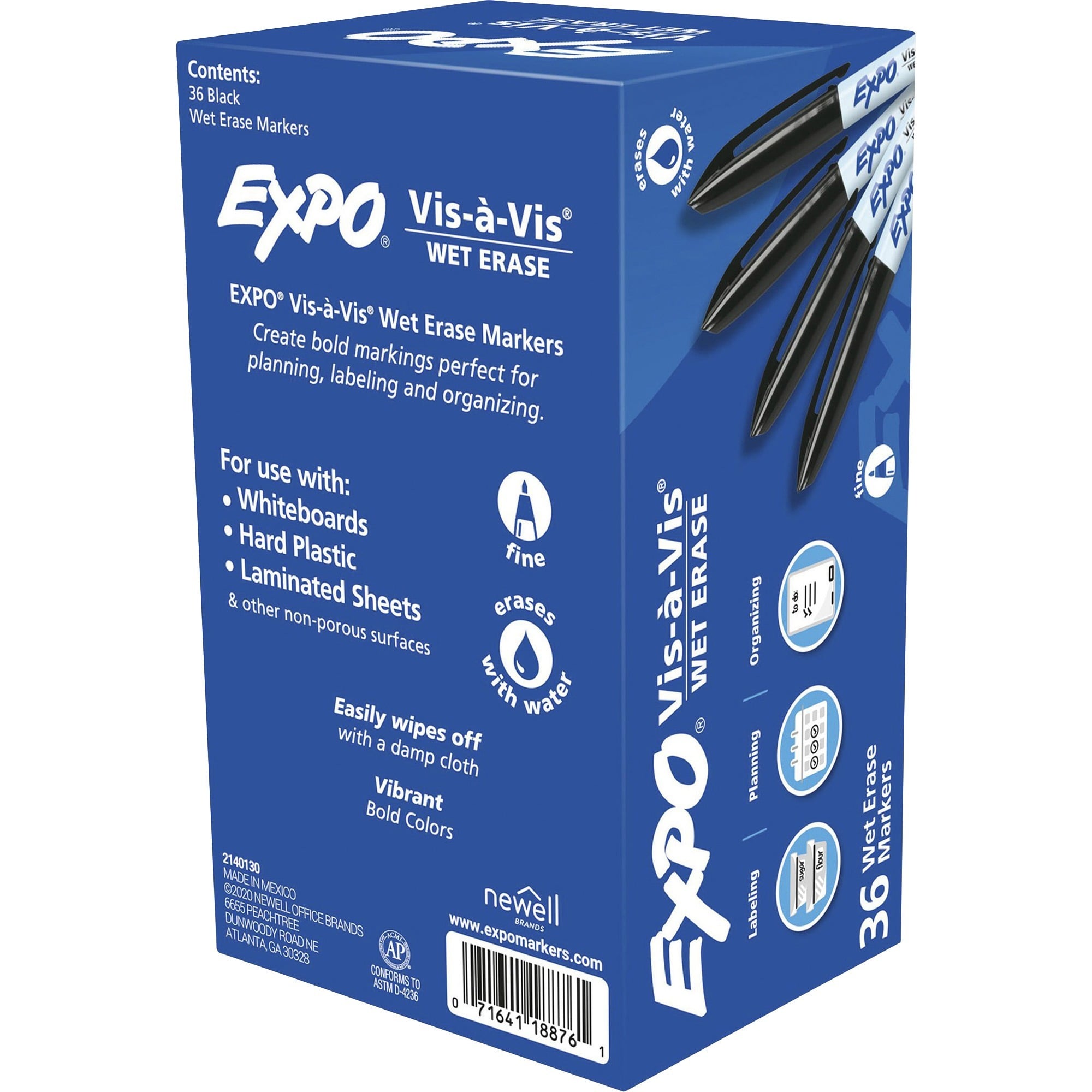 Expo Vis-A-Vis Wet-Erase Markers – Fine Marker Point – Black – 36 / Box