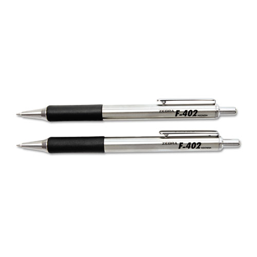 F-402 Ballpoint Pen, Retractable, Fine 0.7 mm, Black Ink, Stainless Steel/Black Barrel, 2/Pack