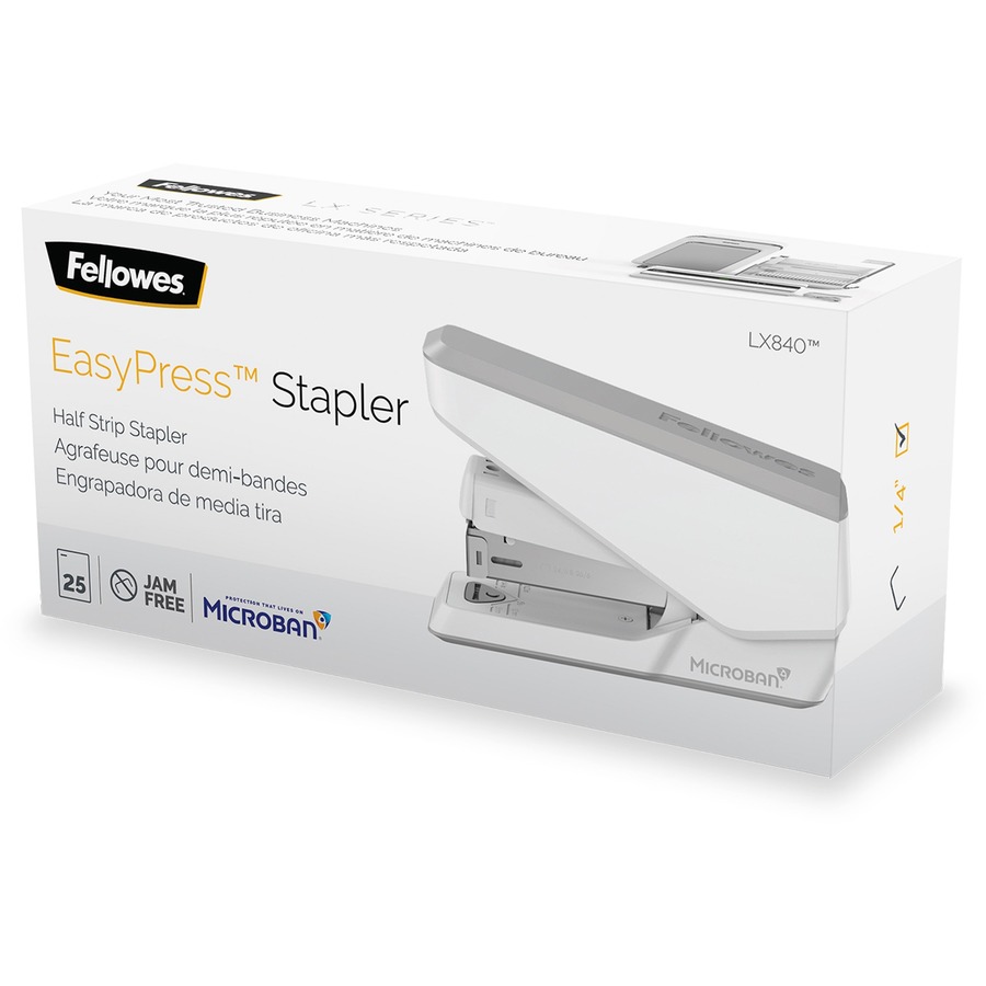 Fellowes LX840 Half Strip EasyPress Stapler White – 105 Staple Capacity – Half Strip – White