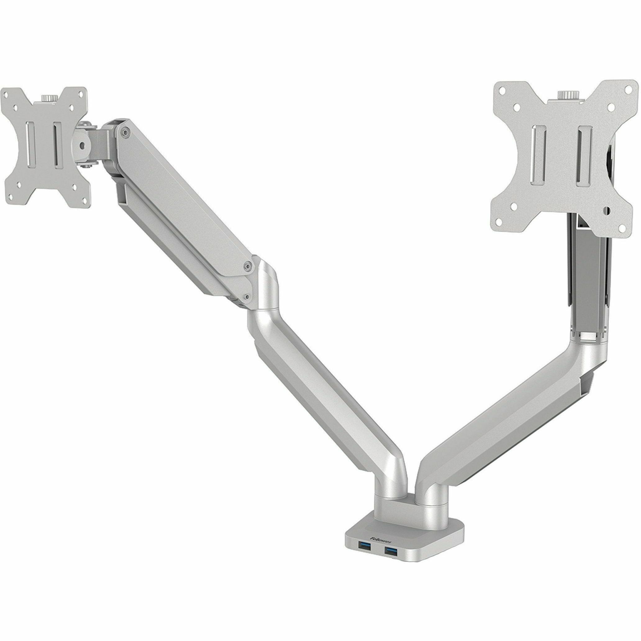 Fellowes Platinum Series Dual Monitor Arm – Silver – 2 Display(s) Supported – 27″ Screen Support – 40 lb Load Capacity – 1 Each