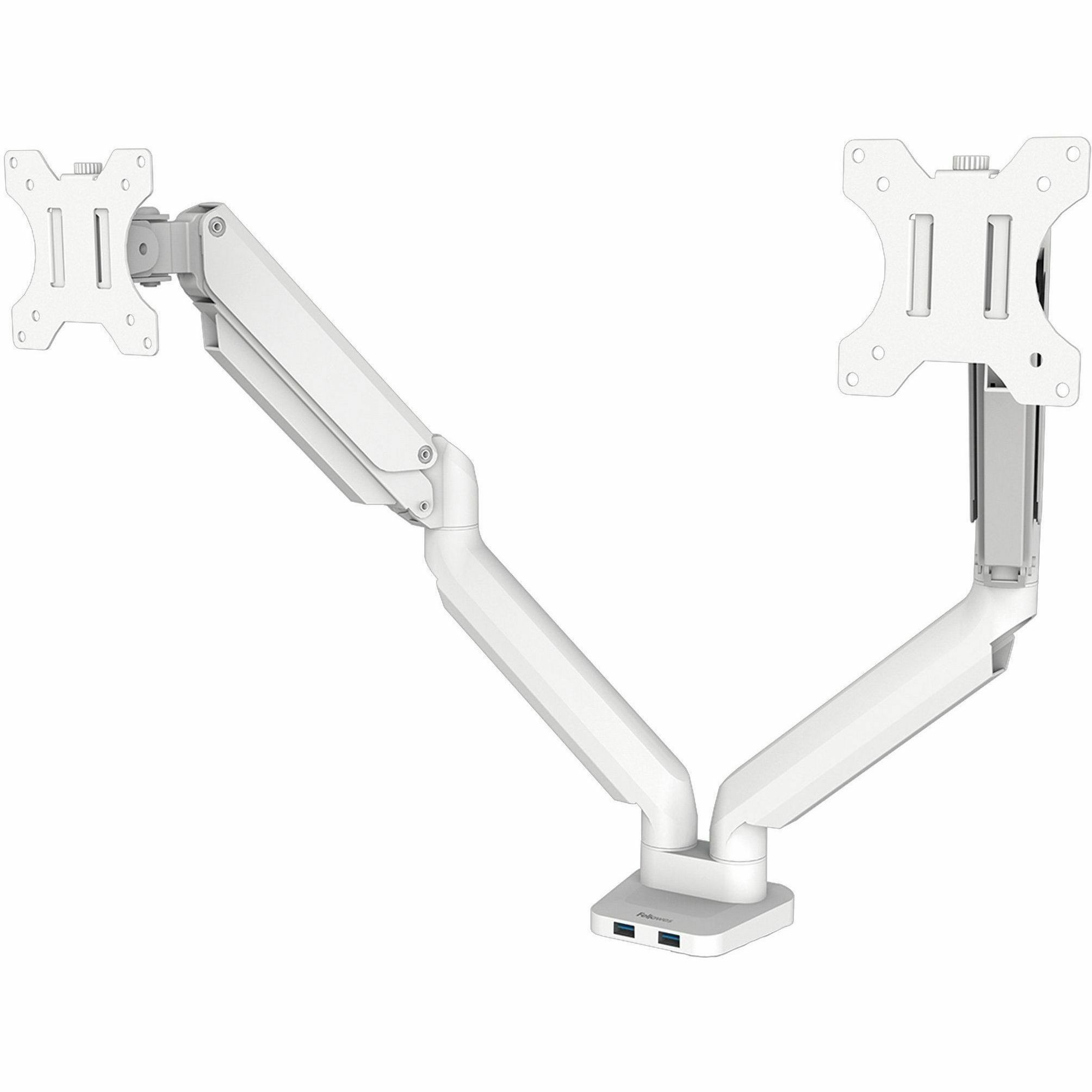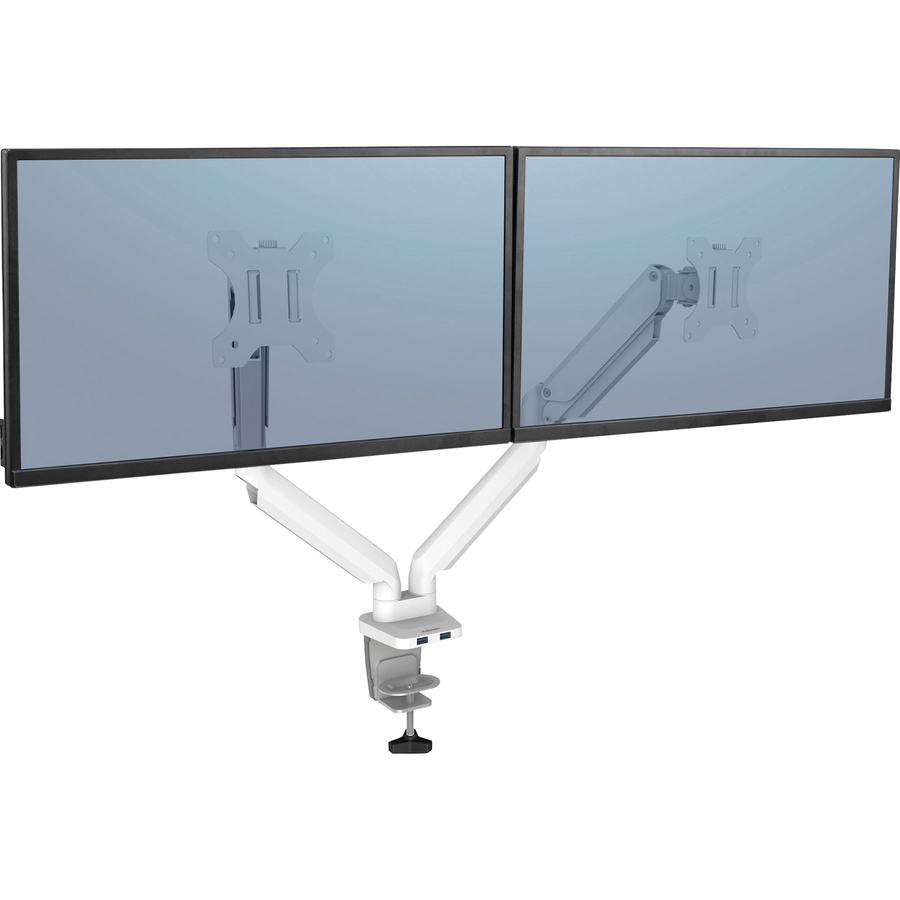 Fellowes Platinum Series Dual Monitor Arm – White – 2 Display(s) Supported – 27″ Screen Support – 40 lb Load Capacity – 1 Each