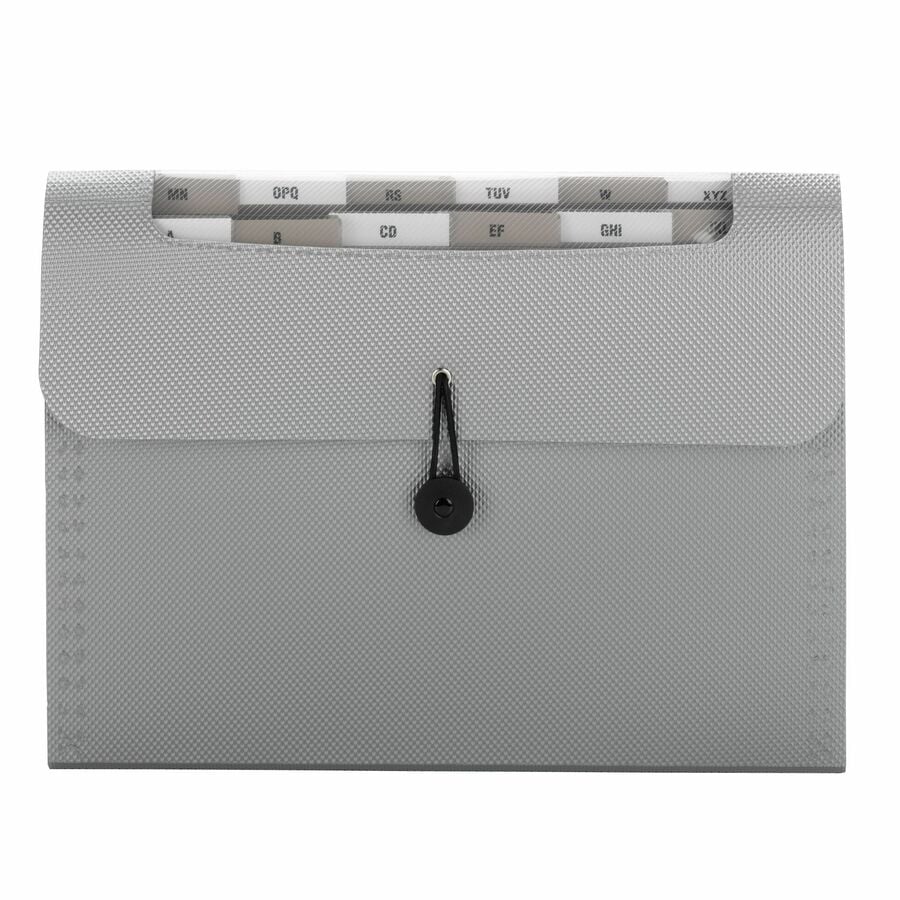 | Marketing Information | <p>13-pocket expanding file features a durable poly shell to keep large amounts of your files and documents neat and orderly. Clear tab inserts allow you to quickly identify what goes where. Reinforced gussets prevent tearing for long-lasting use. Secure bungee closure stays in place while allowing quick access to your files. A random color of expanding file will be selected and shipped.</p> |