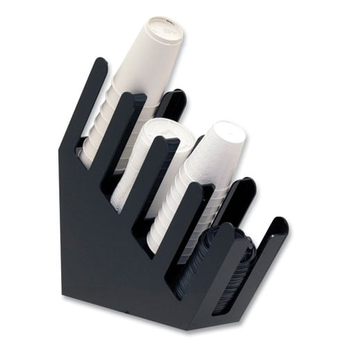 Foundation Collection 4-Compartment Graduated Countertop Coffee Cup Dispenser, 4 x 18 x 16, Black