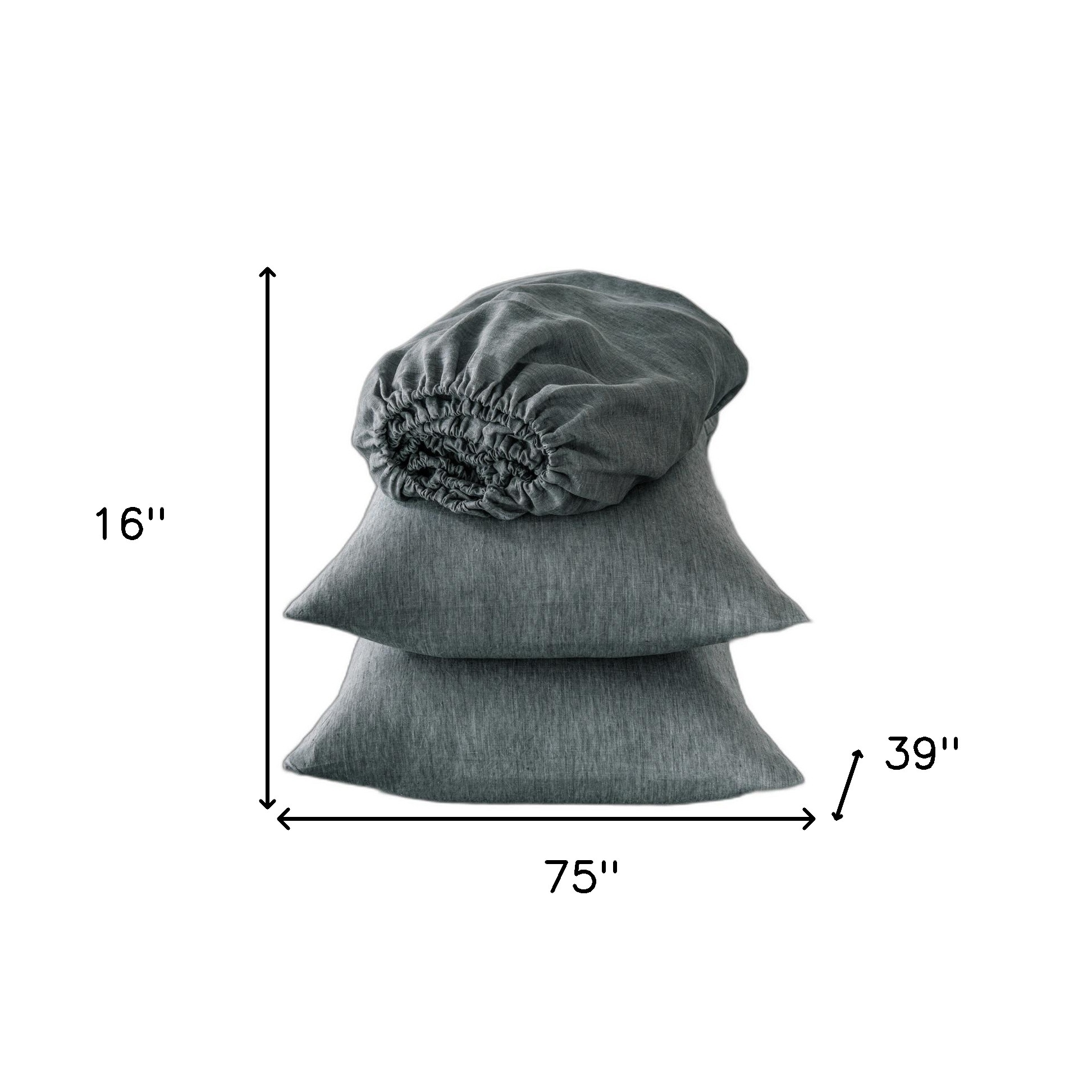 Discover unparalleled comfort and style with this four piece slate gray linen sheet set. Crafted from premium quality linen that is known for its moisture wicking properties to keep you cool and comfortable, these sheets are a luxury but so worth it. They are breathable, have a soft thick texture that will get softer over time, and are wrinkle resistant (not wrinkle free). Crafted with care for a peaceful night’s sleep. 16-inch H x 75-inch W x 39-inch D