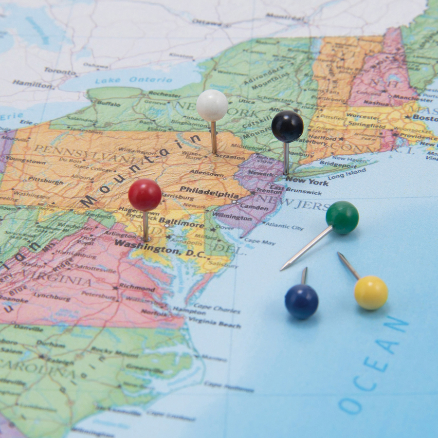 | Marketing Information | <p>Plain map tacks mark location on maps, corkboard and walls for easy and quick identification. Map tack design features a 3/16" head, 3/8" stainless steel point, and high-quality construction.</p> |