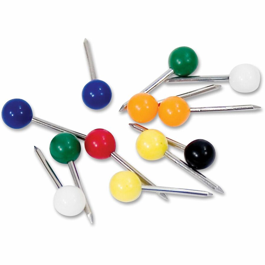 Gem Office Products Round Head Map Tacks – 0.18″ Head – 0.4″ Length – 100 / Box – Assorted