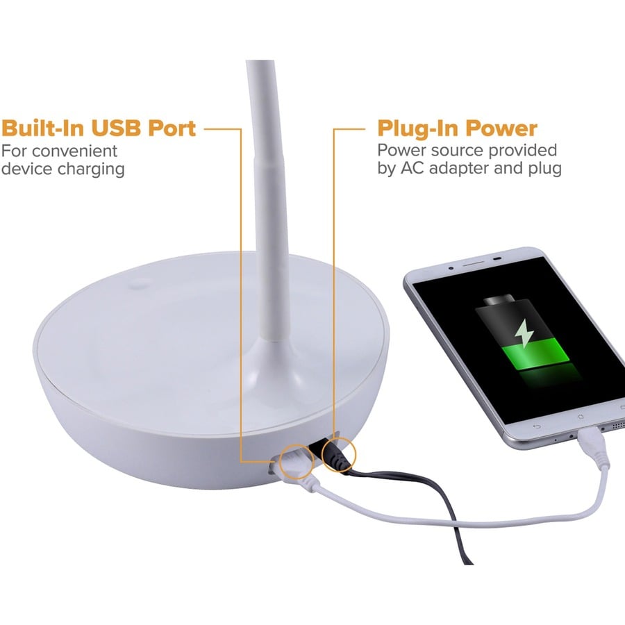 Bostitch Konnect Gooseneck LED Desk Lamp – LED Bulb – Dimmable, Gooseneck, Touch Sensitive Control Panel, Adjustable Brightness, Flexible, Flicker-free, Glare-free Light, Eco-friendly, USB Charging – Desk Mountable – White – for Office, Smartphone, Smart Watch, Tablet, Desk