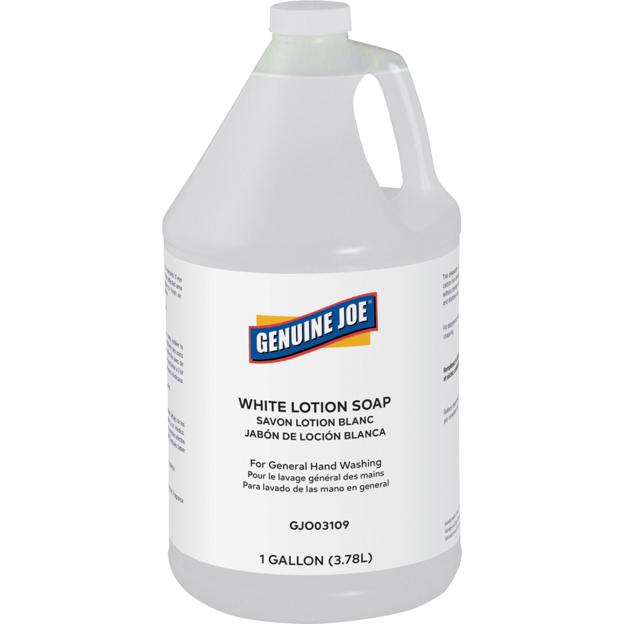 Genuine Joe Lotion Soap – 1 gal (3.8 L) – Ink Remover, Oil Remover, Dirt Remover, Grease Remover, Grime Remover, Carbon Remover – Hand, Skin – White – Pleasant Scent – 4 / Carton