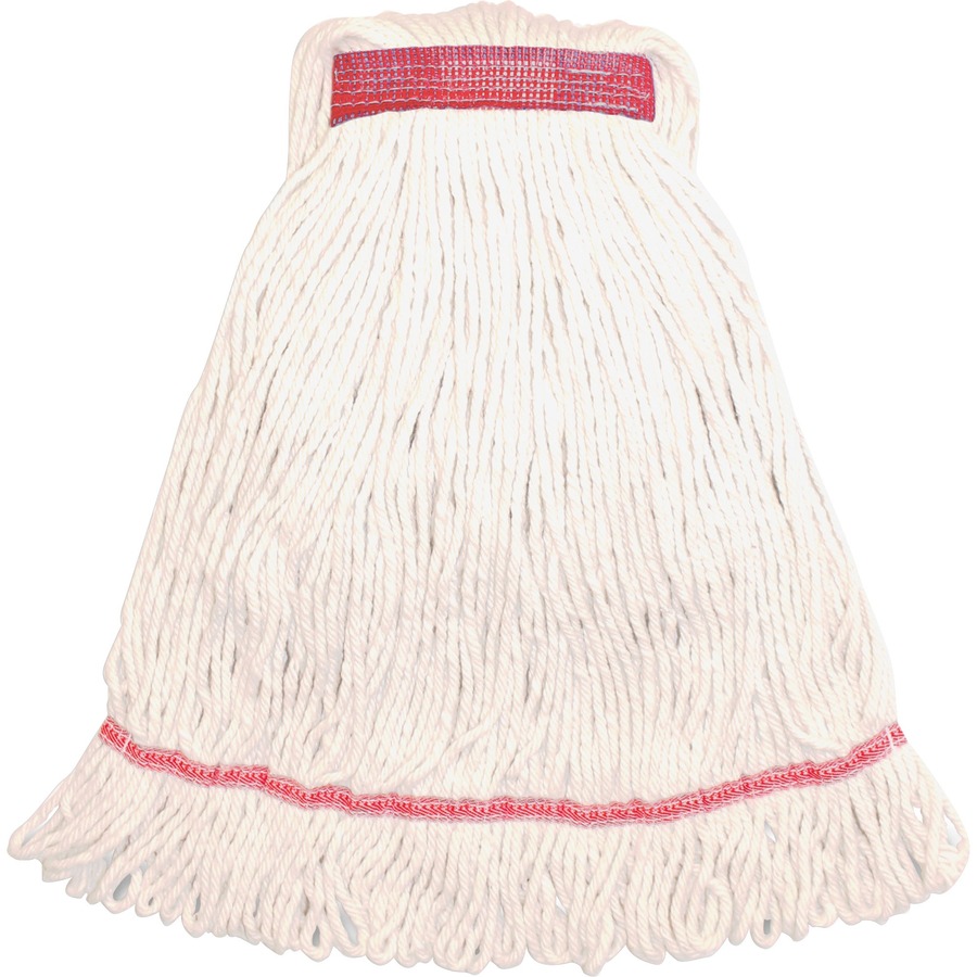 | Marketing Information | <p>Medium-size mophead with a 1-1/4" narrow headband is ideal for general cleaning and disinfecting. Four-ply synthetic blend of rayon and cotton offers added tensile strength and durability. Synthetic blend fibers absorb six to seven times their weight. Looped-end yarn reduces fraying and linting. Tailband creates larger and more consistent floor coverage while mopping, reducing missed spots and labor. This mophead is the ideal choice when the mop will be laundered.</p> |