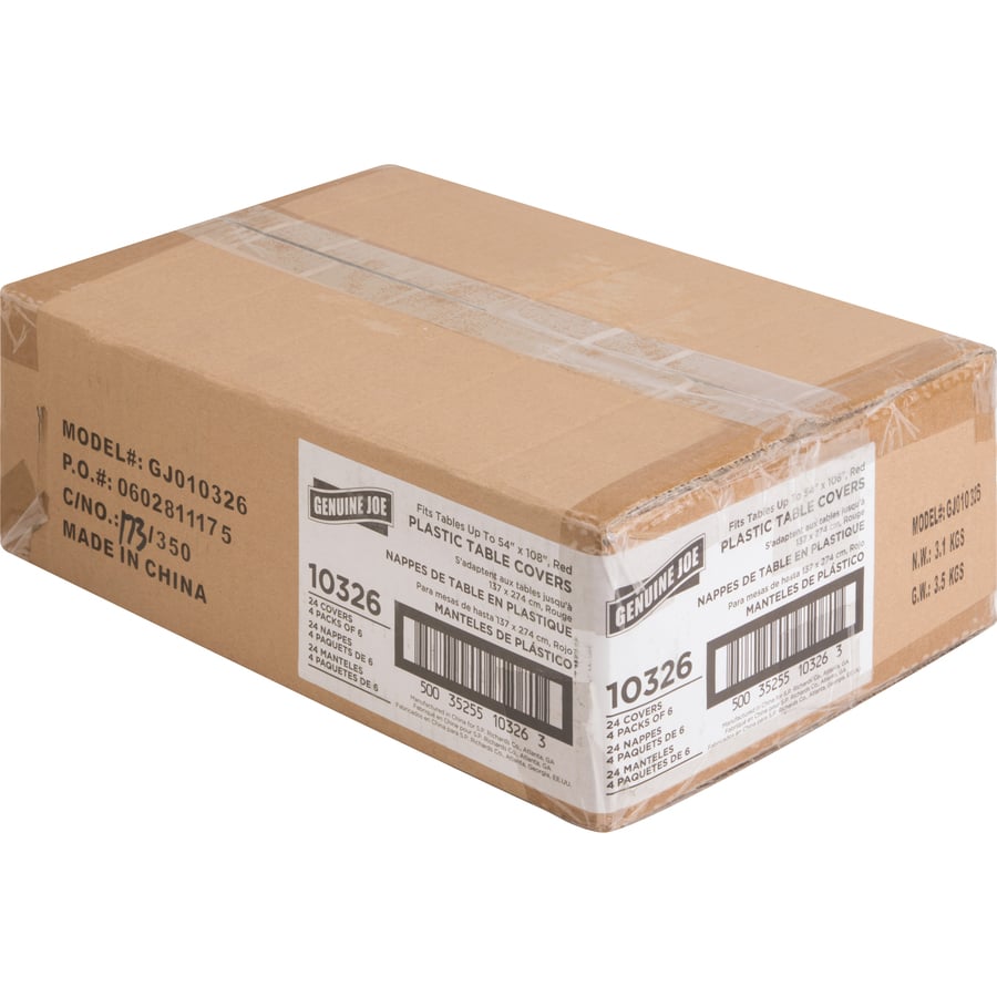 Genuine Joe Plastic Rectangular Table Covers – 108″ Length x 54″ Width – Plastic – Red – 6 / Pack