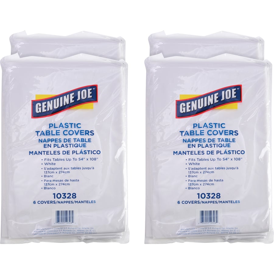 Genuine Joe Plastic Rectangular Table Covers – 108″ Length x 54″ Width – Plastic – White – 6 / Pack