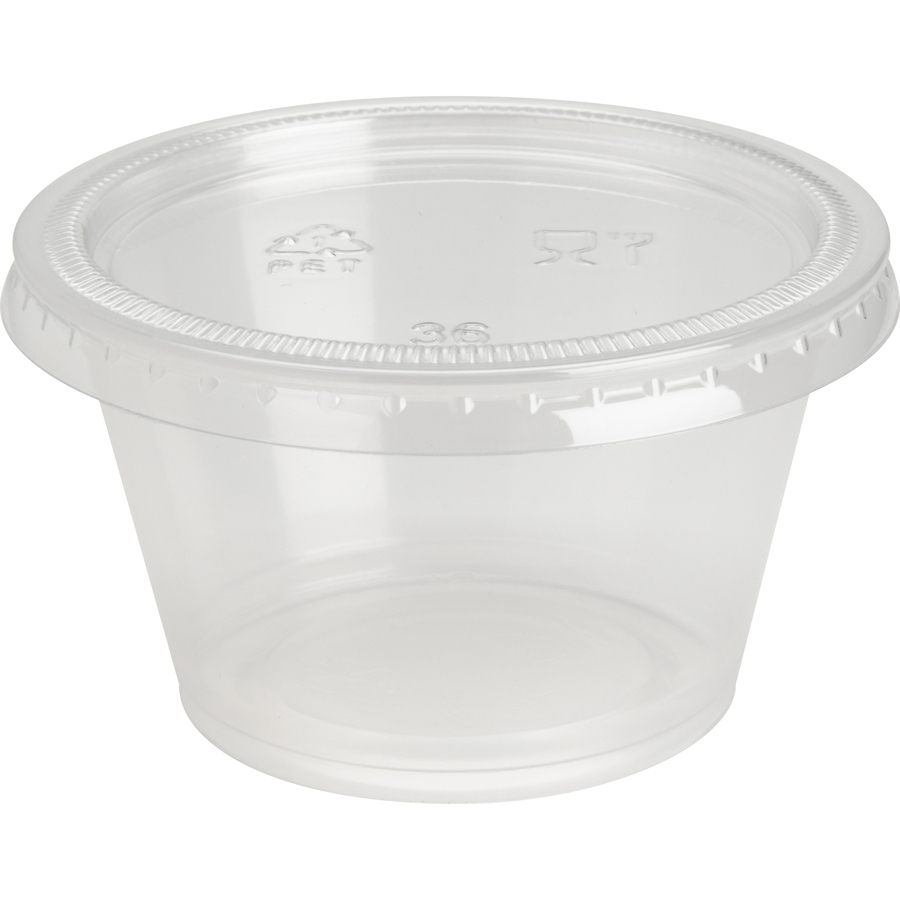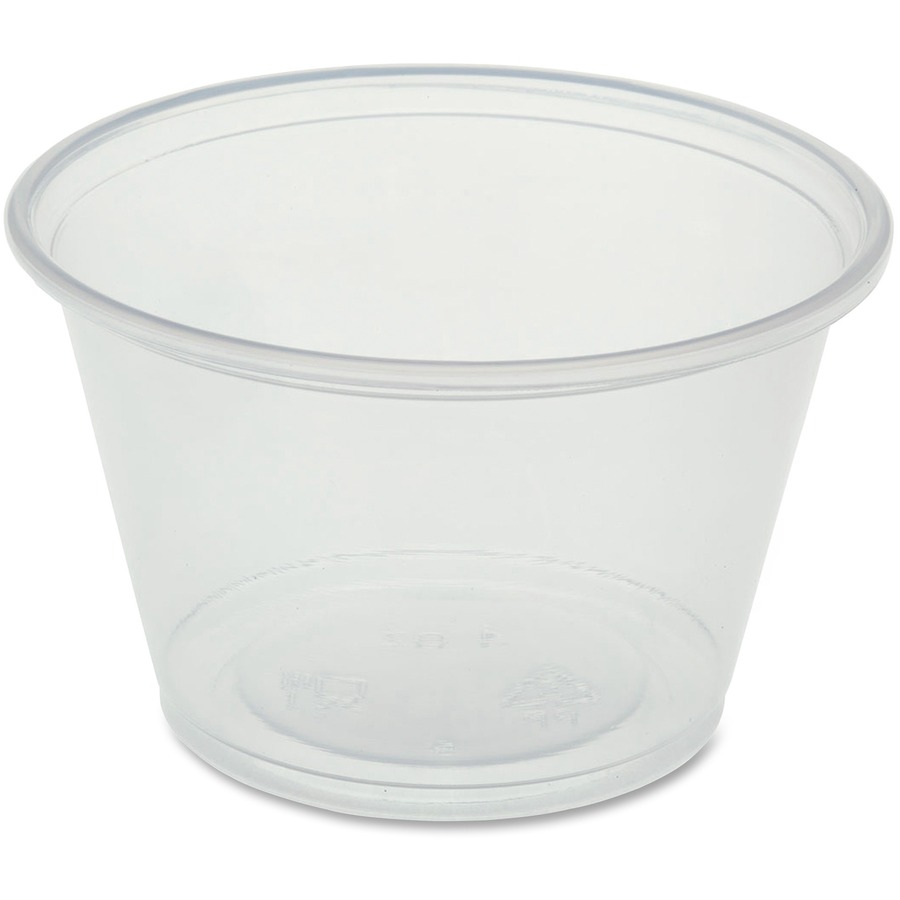 Genuine Joe Portion Cups – 50 / Bag – 4 fl oz – 50 / Carton – Clear – Polystyrene – Beverage, Sauce