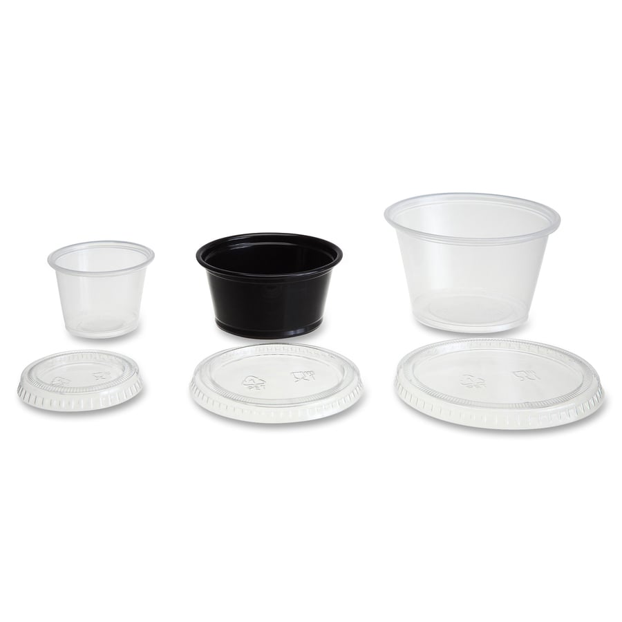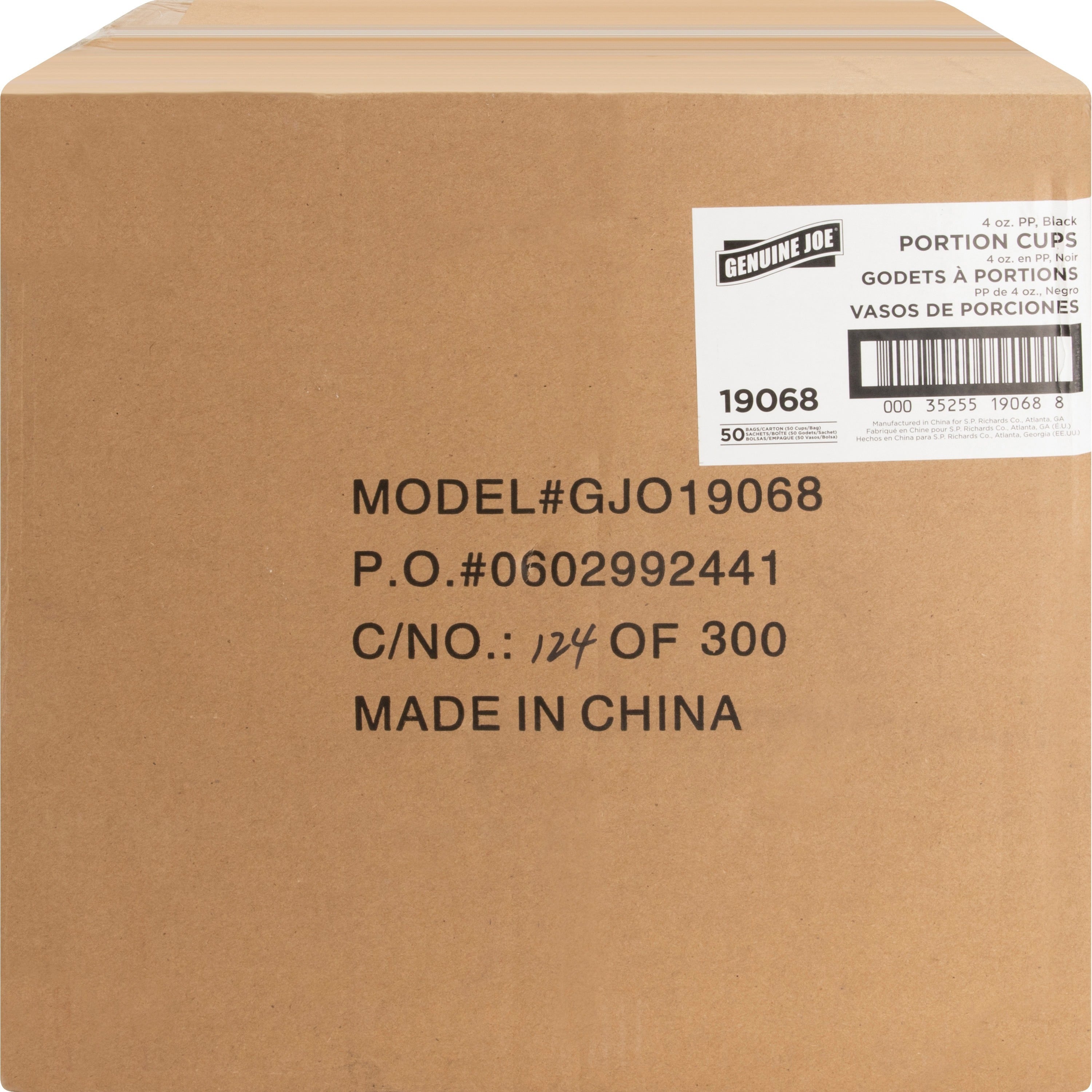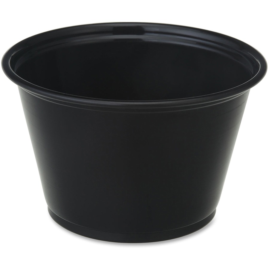 Genuine Joe Portion Cups – 4 fl oz – 50 / Carton – Black – Polystyrene – Beverage, Sauce