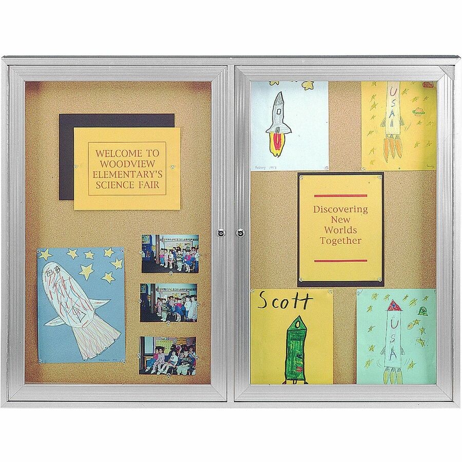 | Marketing Information | <p>Enclosed cork bulletin board features two doors and anodized aluminum in a satin finish. The self-healing, natural cork surface will hold up under the most demanding use to provide years of reliable service. Doors feature full-length hinges and shatter-resistant acrylic panels with flush-mount locks and four keys for added security. For indoor use, bulletin board also features concealed corner brackets for easy, secure mounting.</p> |