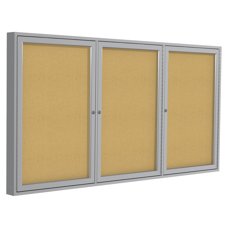 <p>Enclosed bulletin board for indoor use features three lockable clear, shatter-resistant acrylic hinged doors to keep your display clean and undisturbed. Self-healing, natural cork posting surface will stand up to years of tacking. Bulletin board features satin aluminum frame.</p>