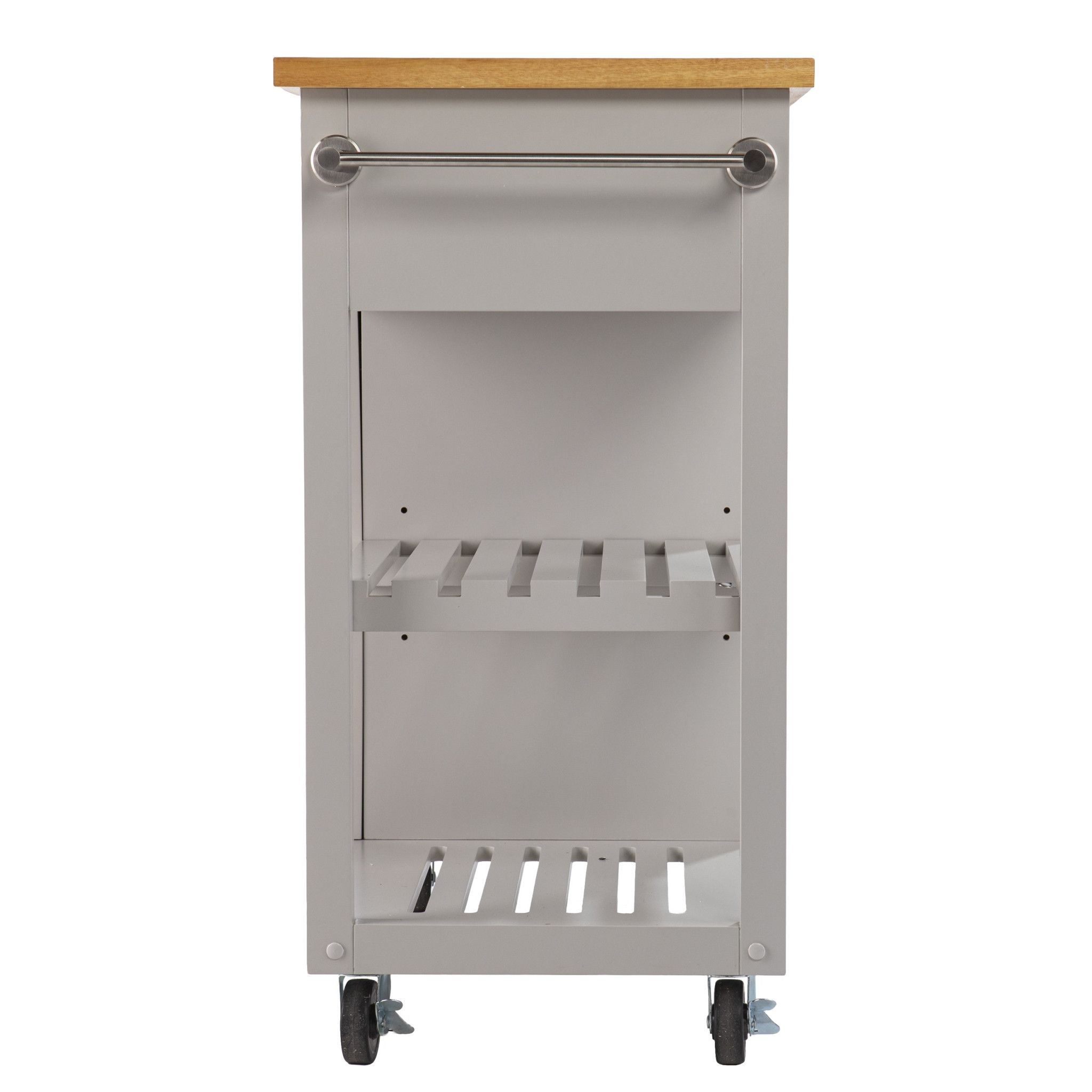 Gray and Natural 35″ Rolling Kitchen Island With Storage