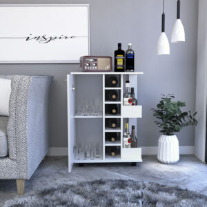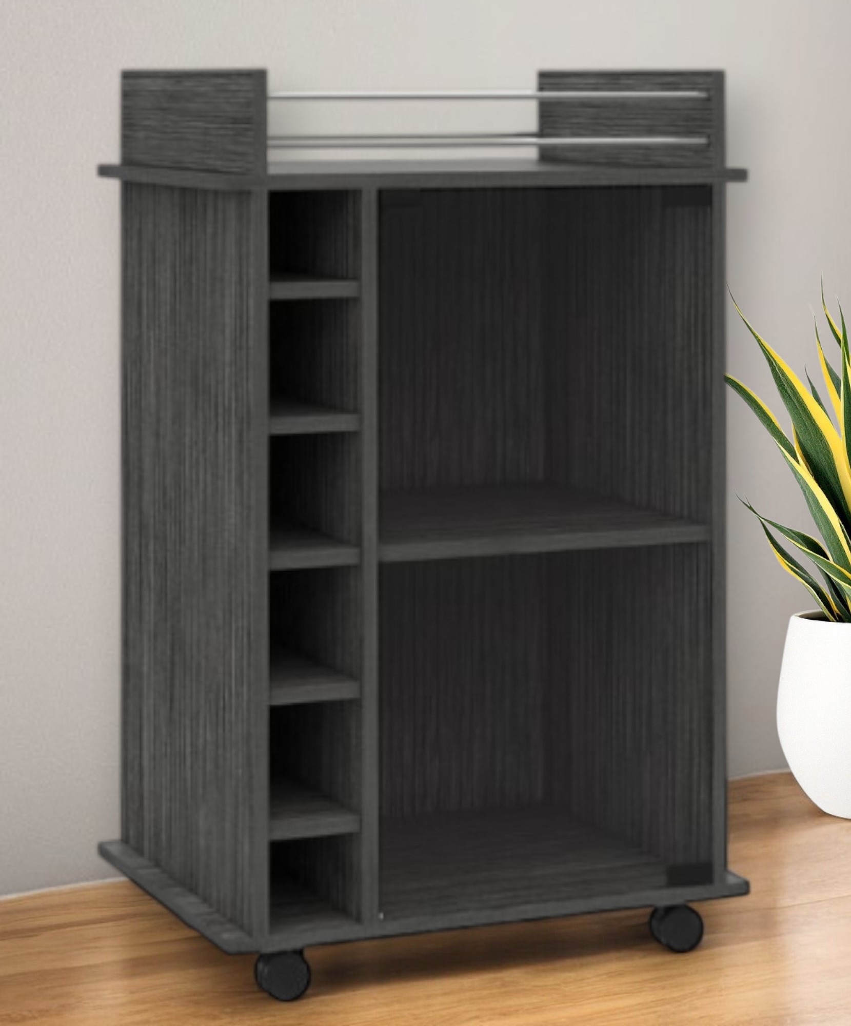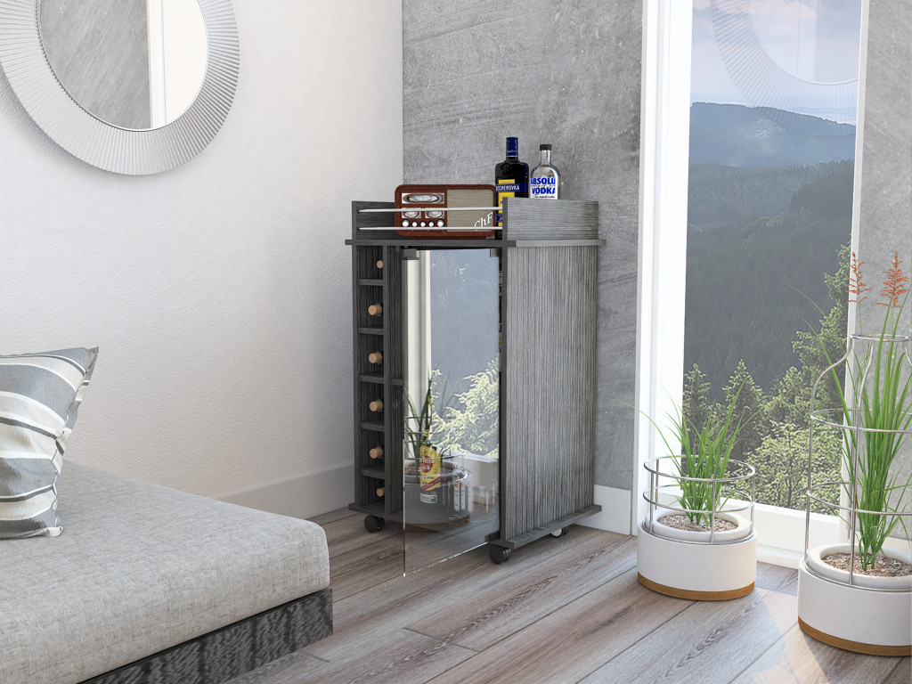 Gray Rolling Bar Cart With Wine Storage