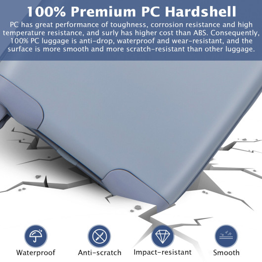 ● Durable Hardside Shell: The carry-on luggage is crafted with 100% PC which has great performance of toughness corrosion resistance and high temperature resistance and surly has higher cost than ABS. Consequently 100% PC luggage is anti-drop waterproof and wear-resistant and the surface is more smooth and more scratch-resistant than other luggage.