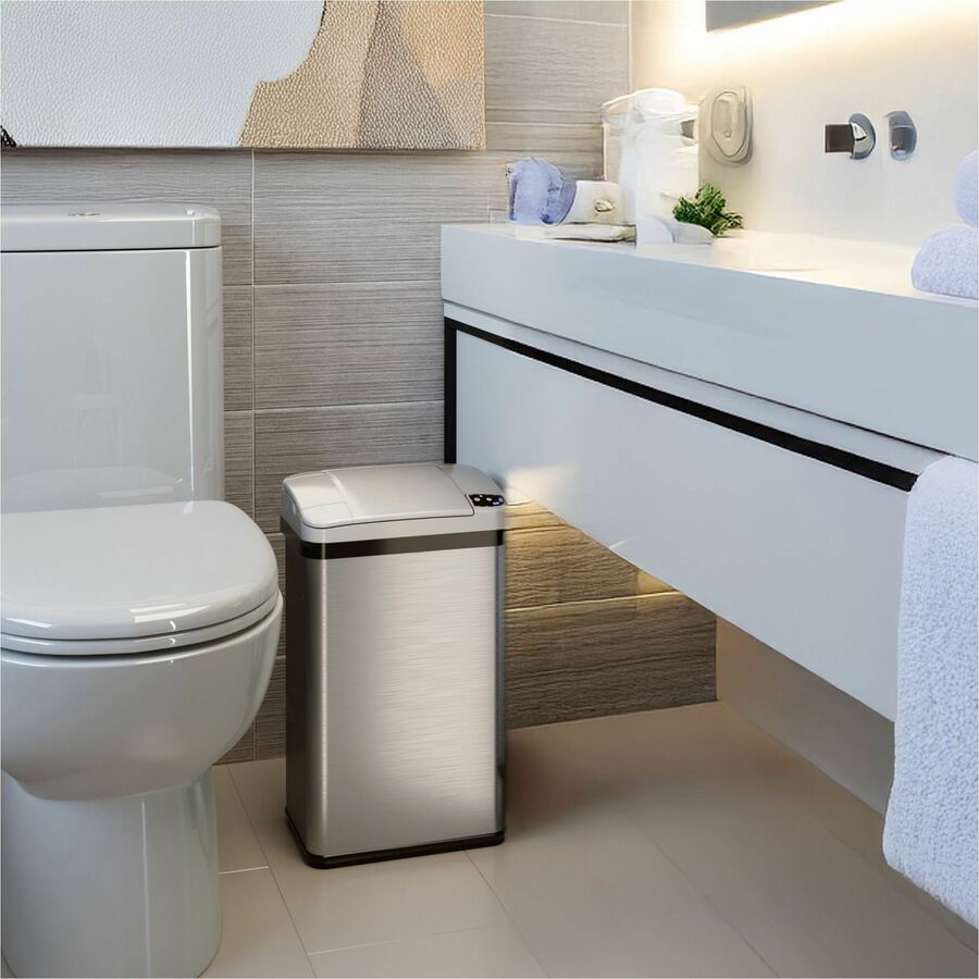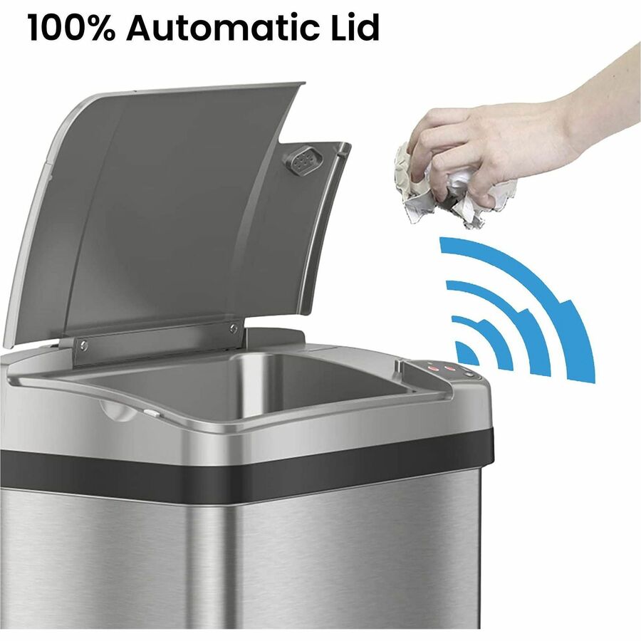 HLS Commercial Stainless Steel Sensor Trash Can – 2.50 gal Capacity – Rectangular – Touchless – Sensor, Fingerprint Resistant – 11.7″ Height x 10.3″ Width – Stainless Steel, ABS Plastic – Gray – 1 Each