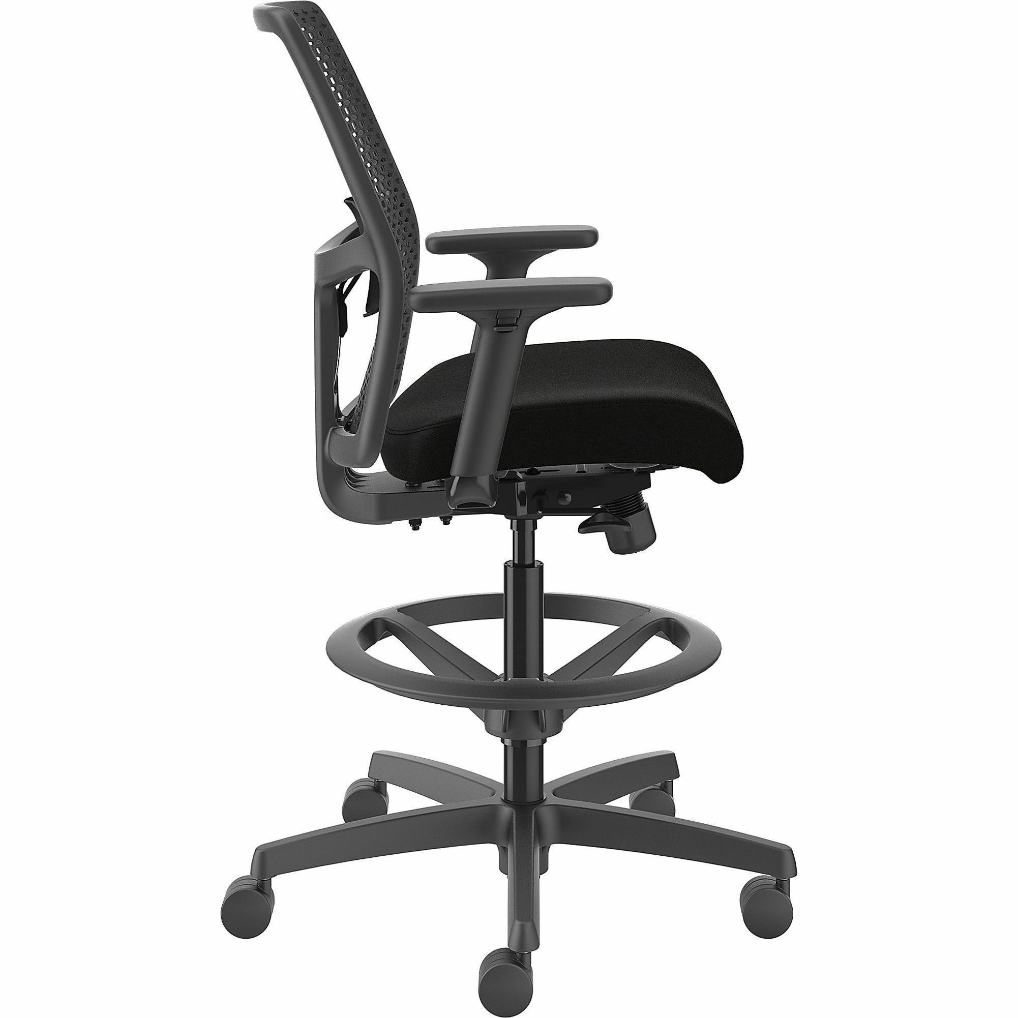 HON Ignition ReActiv Low-Back Task Stool – Black Foam Seat – Black Frame – Low Back – 5-star Base – Armrest – 1 Each