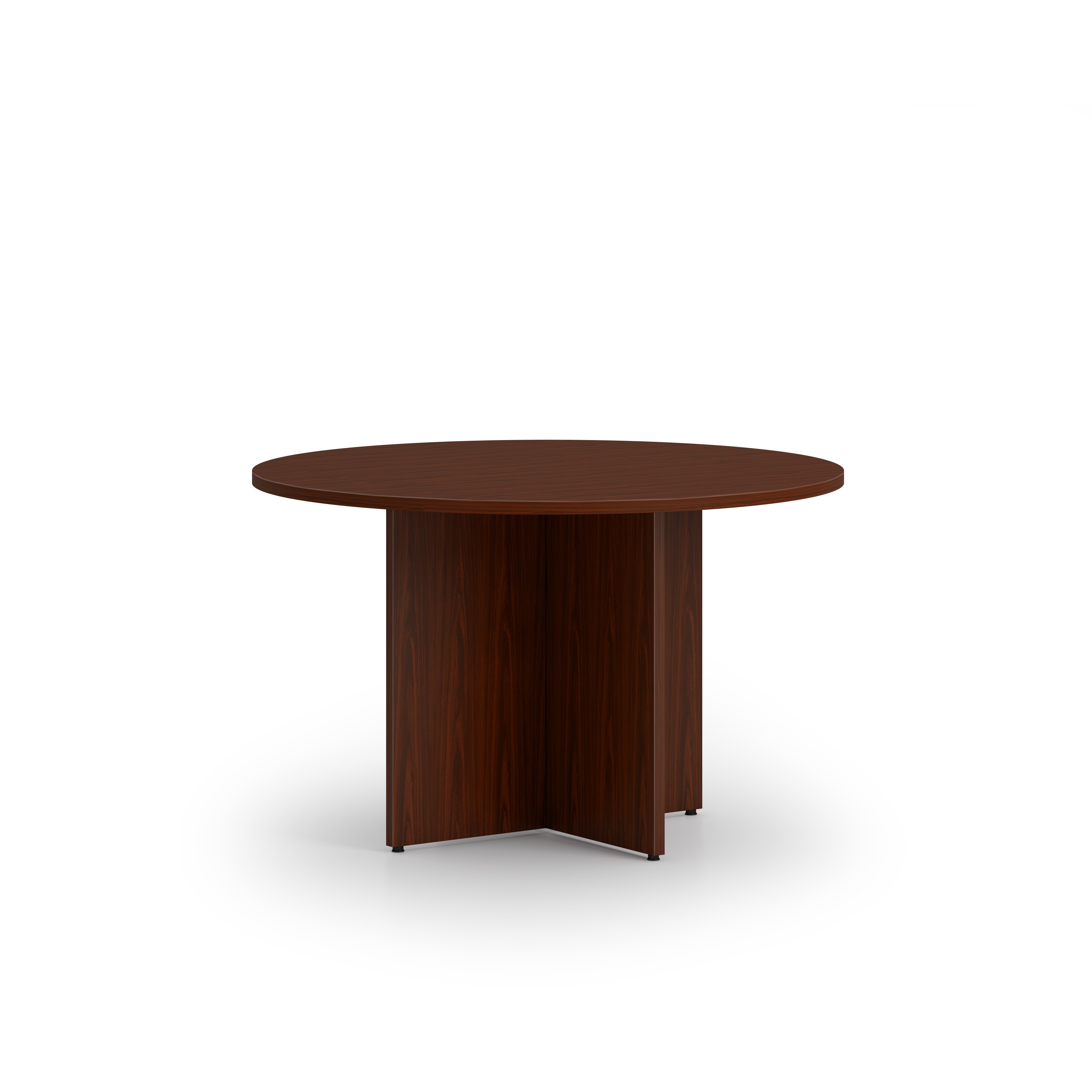| Marketing Information | Conference Table X-base is part of the Mod Desk Collection that delivers simplicity and adaptability to enhance your productivity. Contemporary design feels perfectly at home in either a private office or an open floor plan. Metal-to-metal fastening system allows precise assembly. Add this X-base to a 48" diameter Mod Conference Tabletop (sold separately) to create a complete table that seats up to five people. Finished table height is 29" to match Mod desk heights. Durable, Traditional Mahogany laminate is scratch-resistant, spill-resistant and stain-resistant. Leveling glides compensate for uneven floors. Footprint measures 30" in diameter. <p><a id="gfk-spex-minisite" rel="nofollow" href="javascript:void(0)" onclick="javascript:window.open('//content.etilize.com/mini-site/en_us/1070136563.html', '_blank', 'height=800, width=780, resizable=yes, scrollbars=yes, toolbar=no, menubar=no, location=no, directories=no, status=no'), return false, ">More from the Manufacturer</a></p> |