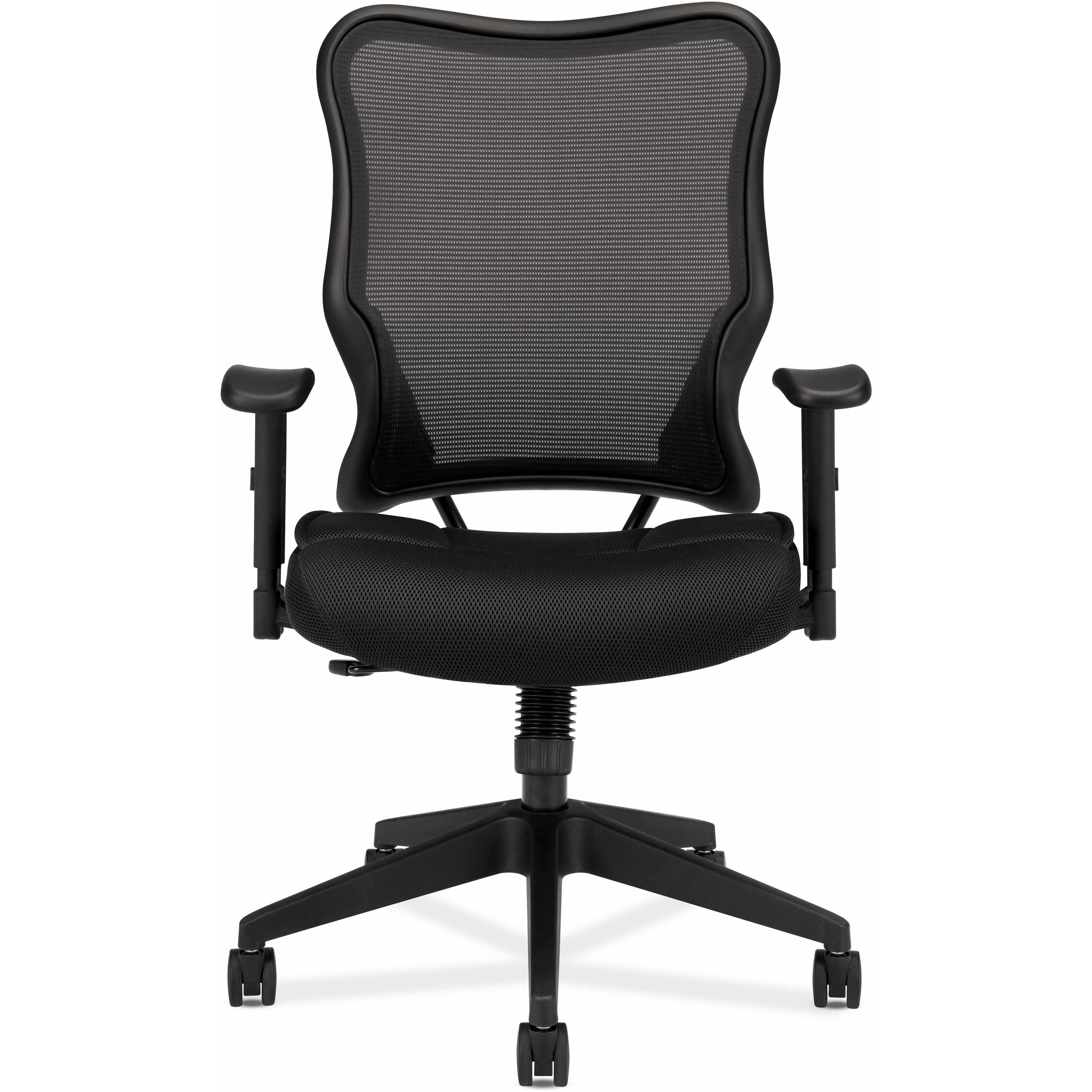HON Wave Chair – Black Fabric Seat – Black Reinforced Resin, Mesh Back – Black Reinforced Resin Frame – High Back – 5-star Base – Black