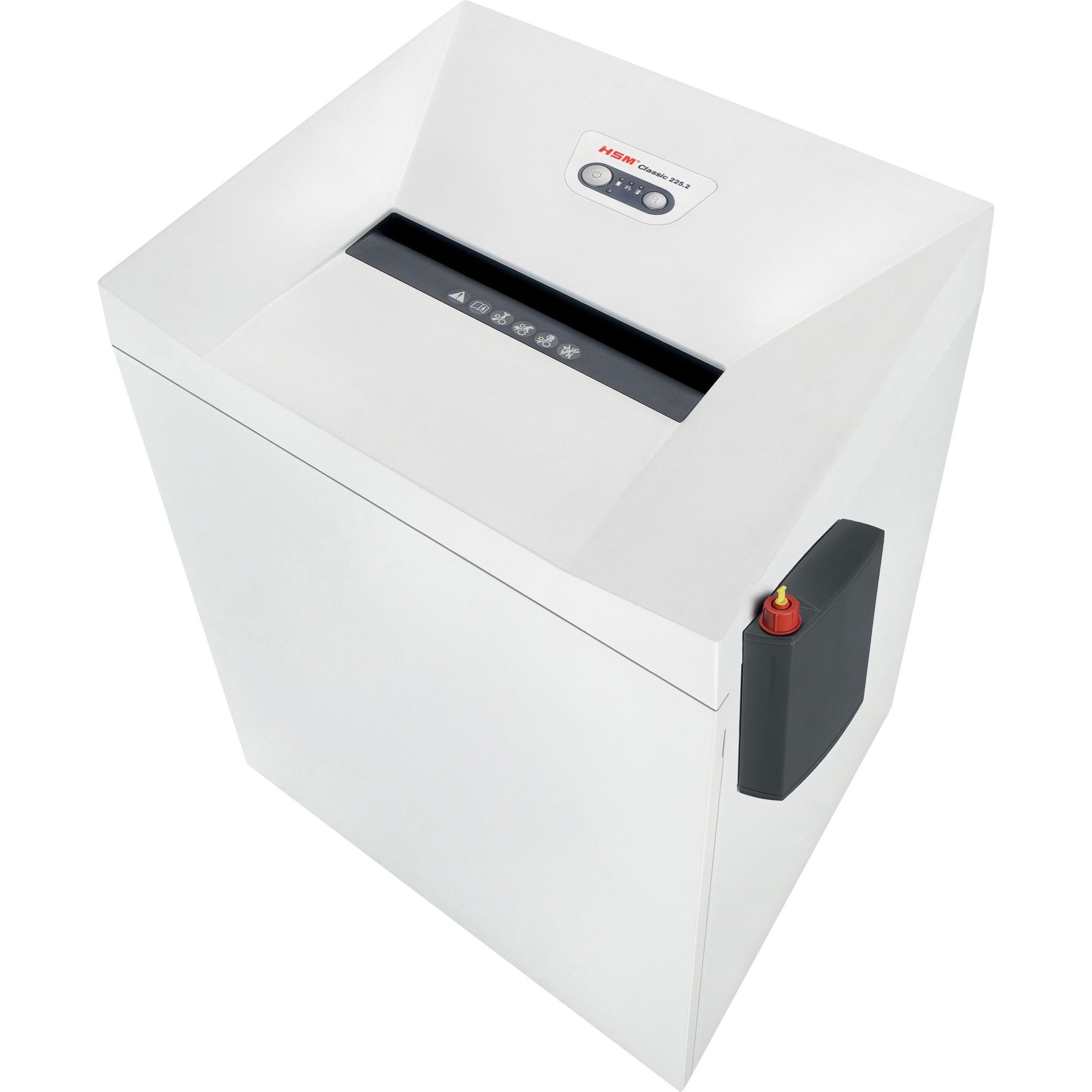 HSM Classic 225.2 – 1/32″ x 3/16″ + External Autom. Oiler – Continuous Shredder – Particle Cut – 7 Per Pass – for shredding Paper, Staples, Paper Clip – 0.031″ x 0.188″ Shred Size – P-7/F-3 – 11.81″ Throat – 31.70 gal Wastebin Capacity – 1400 W