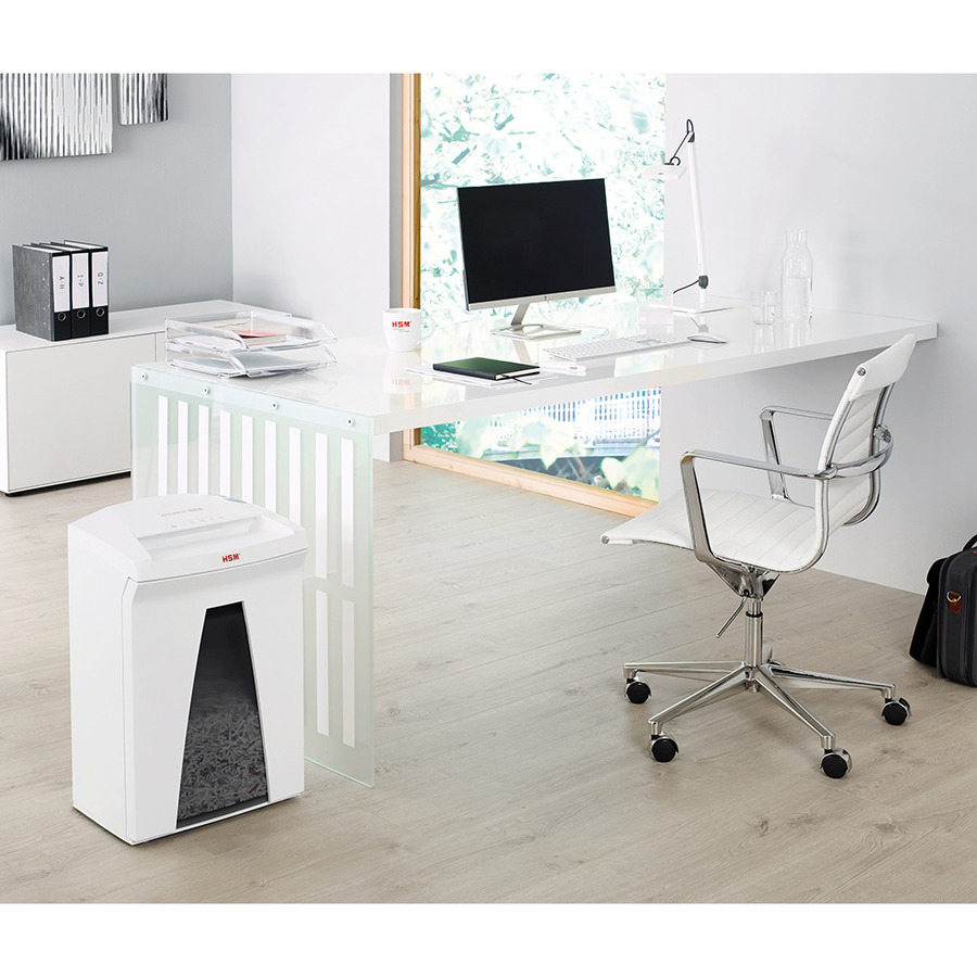 HSM SECURIO B32 – 1/16″ x 5/8″ – Continuous Shredder – Particle Cut – 11 Per Pass – for shredding Credit Card, Paper, Paper Clip, Staples – 0.063″ x 0.625″ Shred Size – P-5/T-5/E-4/F-2 – 12.20″ Throat – 21.70 gal Wastebin Capacity – White