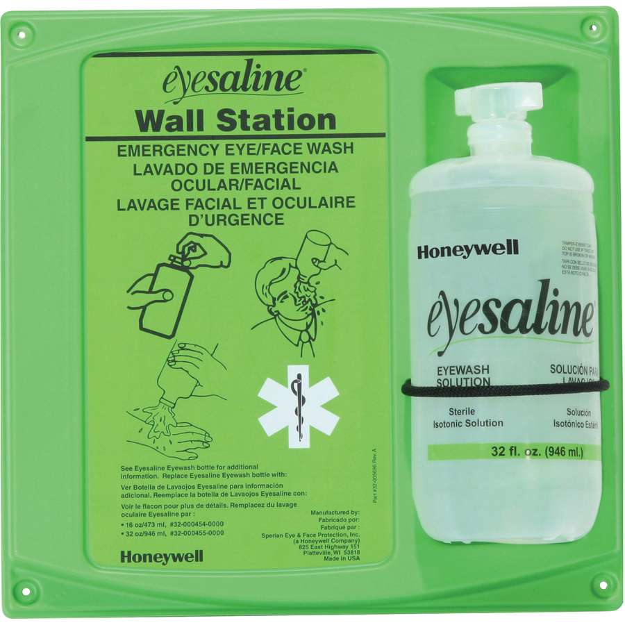 | Marketing Information | <p>Face/eyewash station provides fast, immediate flushing and decontamination during an emergency. Wall-mountable, plastic station features two bottles of saline solution that are safety-sealed and dated to guard against contamination. Wide mouth bottles allow more effective flushing for alkali and acid splash. Wash station meets ANSI X358.2004 requirements as a personal eyewash only.</p> |