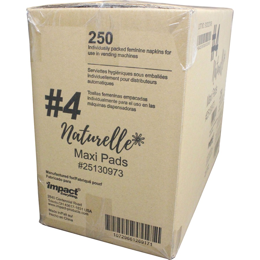 Impact Naturelle Maxi Pads – 250 / Carton – Individually Wrapped, Anti-leak