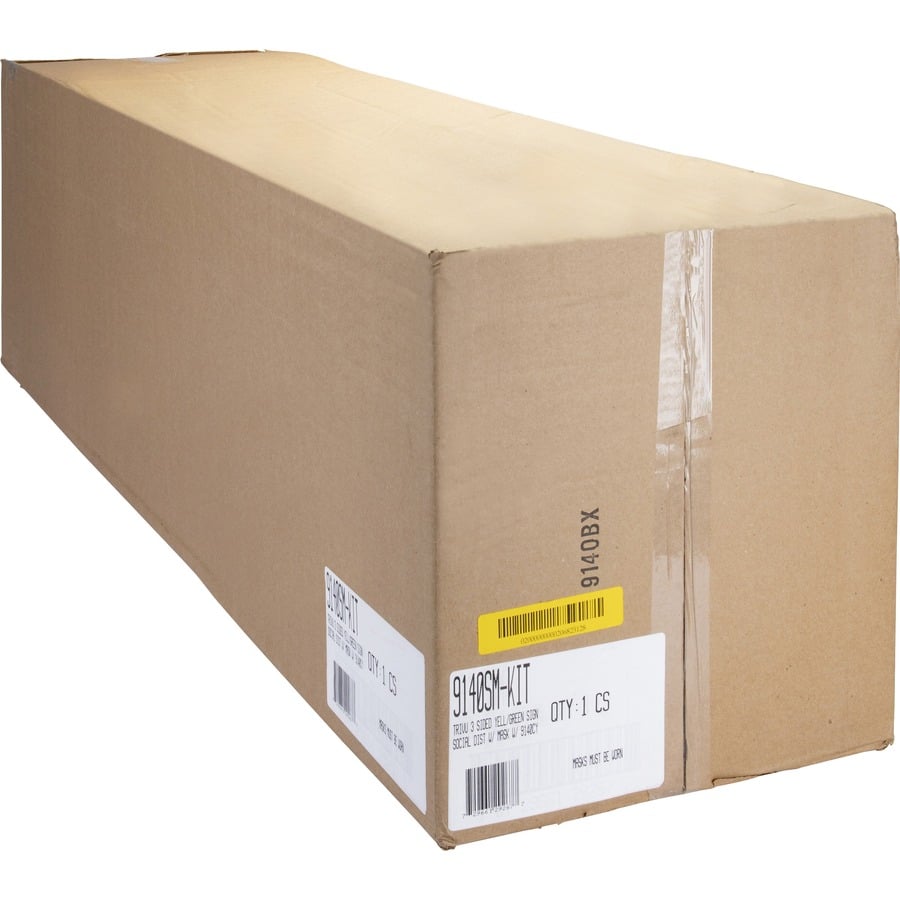 | Marketing Information | <p>Three-sided safety sign for social distancing helps mark a safe distance between guests. It allows a business to be compliant with government social distancing guidelines. Substantial cone shape, 14-3/4" square base and 40" height means it is sure to be noticed. Safety sign offers 34 percent more viewing space compared to four-sided signs. Each side of this TriVue 3-Sided Safety Sign reads, "Caution Maintain Social Distancing, At Least 6 Ft Distance from Others." Ultraviolet protection on the plastic construction allows it to be used indoors and outdoors.</p> |