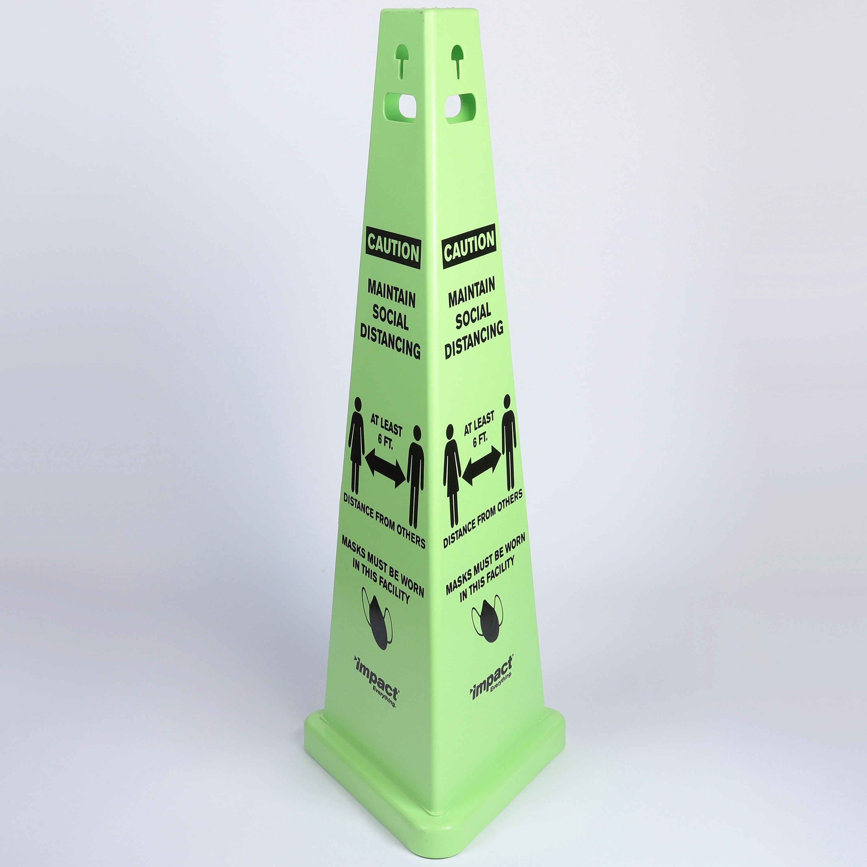 Impact TriVu Social Distancing 3 Sided Safety Cone – 1 Each – Caution Maintain Social Distancing Print/Message – 40″ Height – Cone Shape – Three-sided, UV Protected – Plastic – Fluorescent Yellow
