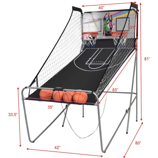 ● Foldable and Durable Iron Construction: It’s easy to fold up by removing the latch pin. After folding this sturdy iron basketball arcade machine saves space close to 50% making it easier for storage. And this powder coated iron tube made machine is able to withstand continual use for years.