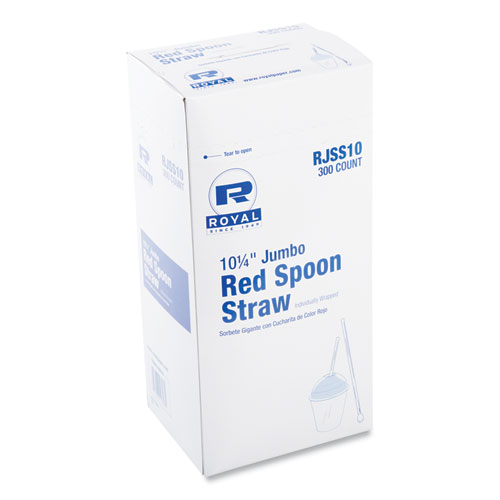 Jumbo Spoon Straw, 10.25", Plastic, Red, 300/Pack, 18 Packs/Carton
