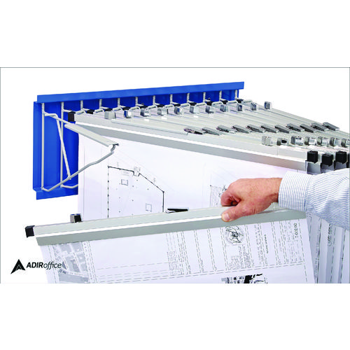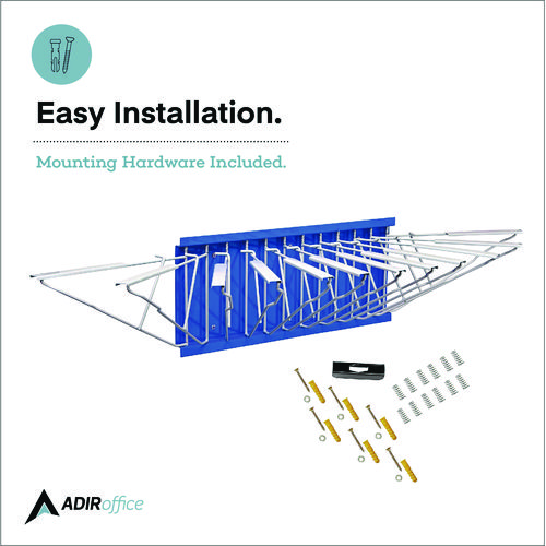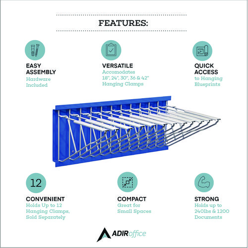 With the AdirOffice Pivot Wall Rack with Hangers, you get easy access to your blueprints, plan drawings, maps and other large documents. Keeping you organized in the office and making your work day more efficient, you can quickly retrieve any large-format file in no time flat. Hanging blueprint storage is no problem with Adir Corp. This vertical wall rack’s 12 pivoting hangers swing wide and freely from side to side for easy access and viewing. Plus, you can fit a variety of clamp sizes onto the holder at once, each hanger will fit one paper clamp of any size. This blueprint wall rack is expertly crafted using solid steel to provide long-lasting strength and use for years to come. Furthermore, it’s furnished in powder-coated finish that will easily fit into and enhance any interior space. You can quickly install the rack on any wall with the included mounting hardware. Please note: due to the 240 lb weight capacity, it would be best installed over a wall stud or solid surface. Once mounted, it allows for easy, convenient access to all of your stored documents.Note: This is a non-returnable item.