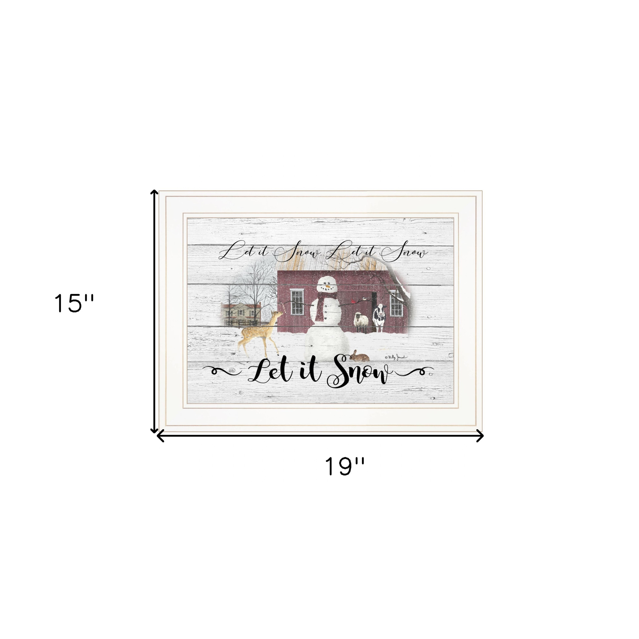 This let it snow 2 white framed print wall art is the perfect way to celebrate and decorate for the Christmas Season. This print is a visual artistic expression that allows you to decorate your space in style. Reproduced for you on paper, this hanging decorative accent will be a trendy and fashionable way to dress your walls. Adding this hanging wall art to your space to make your room feel more finished and attractive. Instantly liven up your space with this art that brings color and dimension to your walls. 15 inches H x 19 inches W x 1 inches D